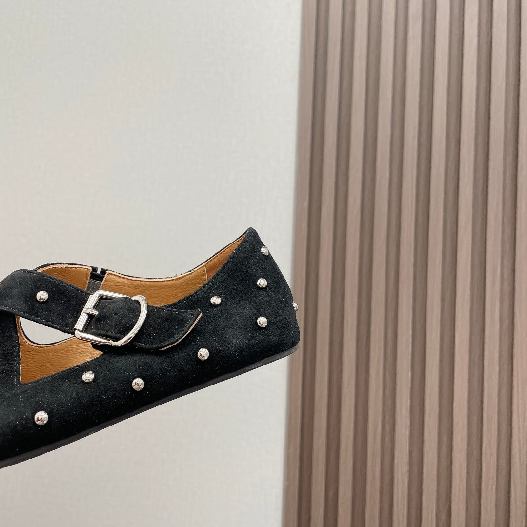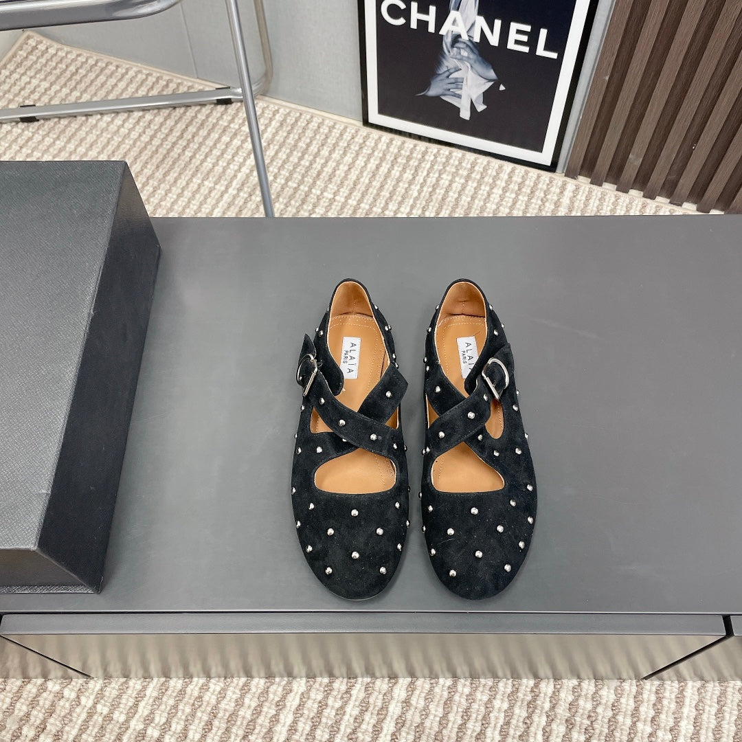 Alaia 2025 Criss Cross With Stud Ballet Flats Black Suede 293205