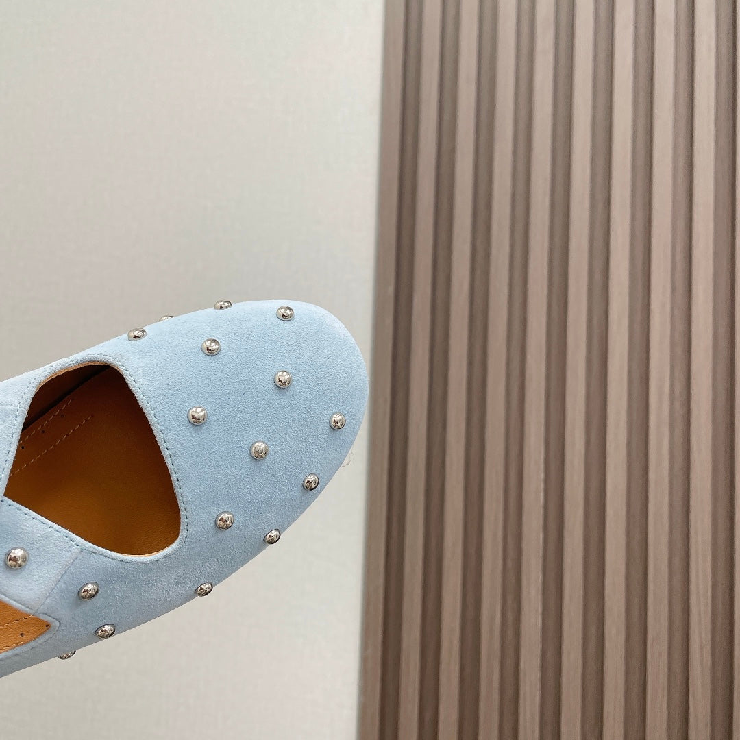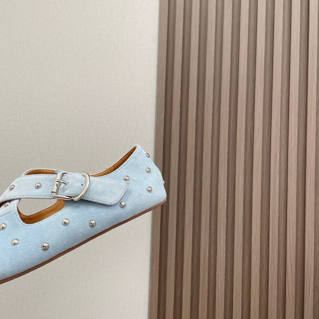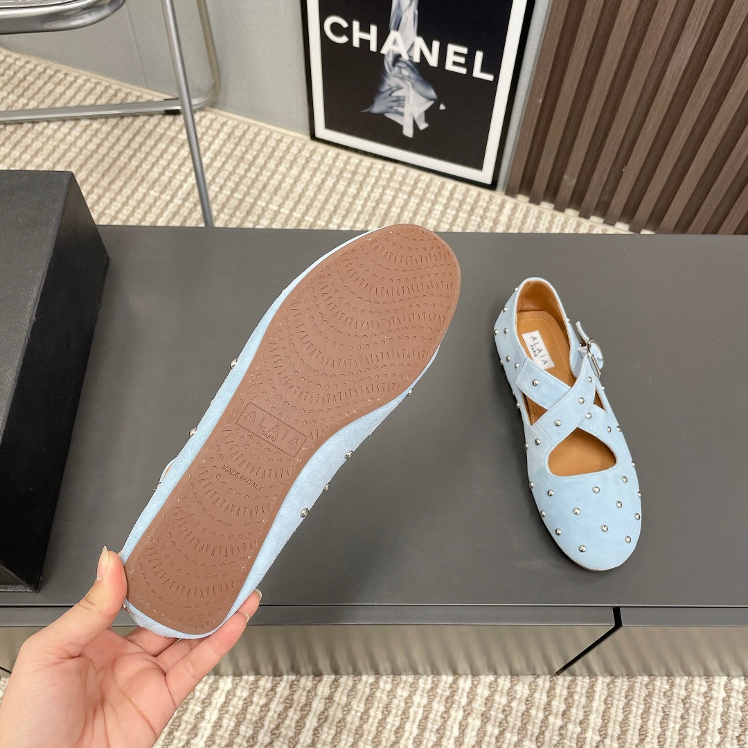 Alaia 2025 Criss Cross With Stud Ballet Flats Light Blue Suede 293212