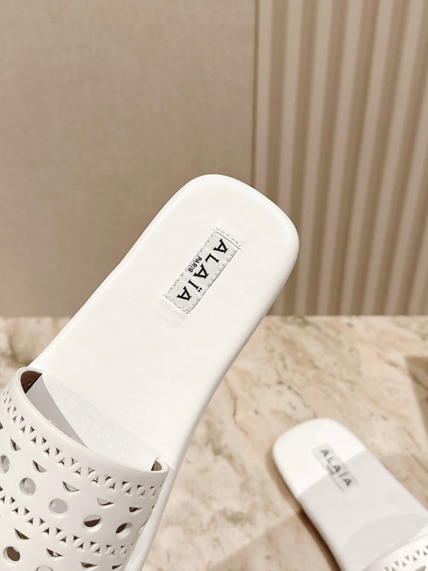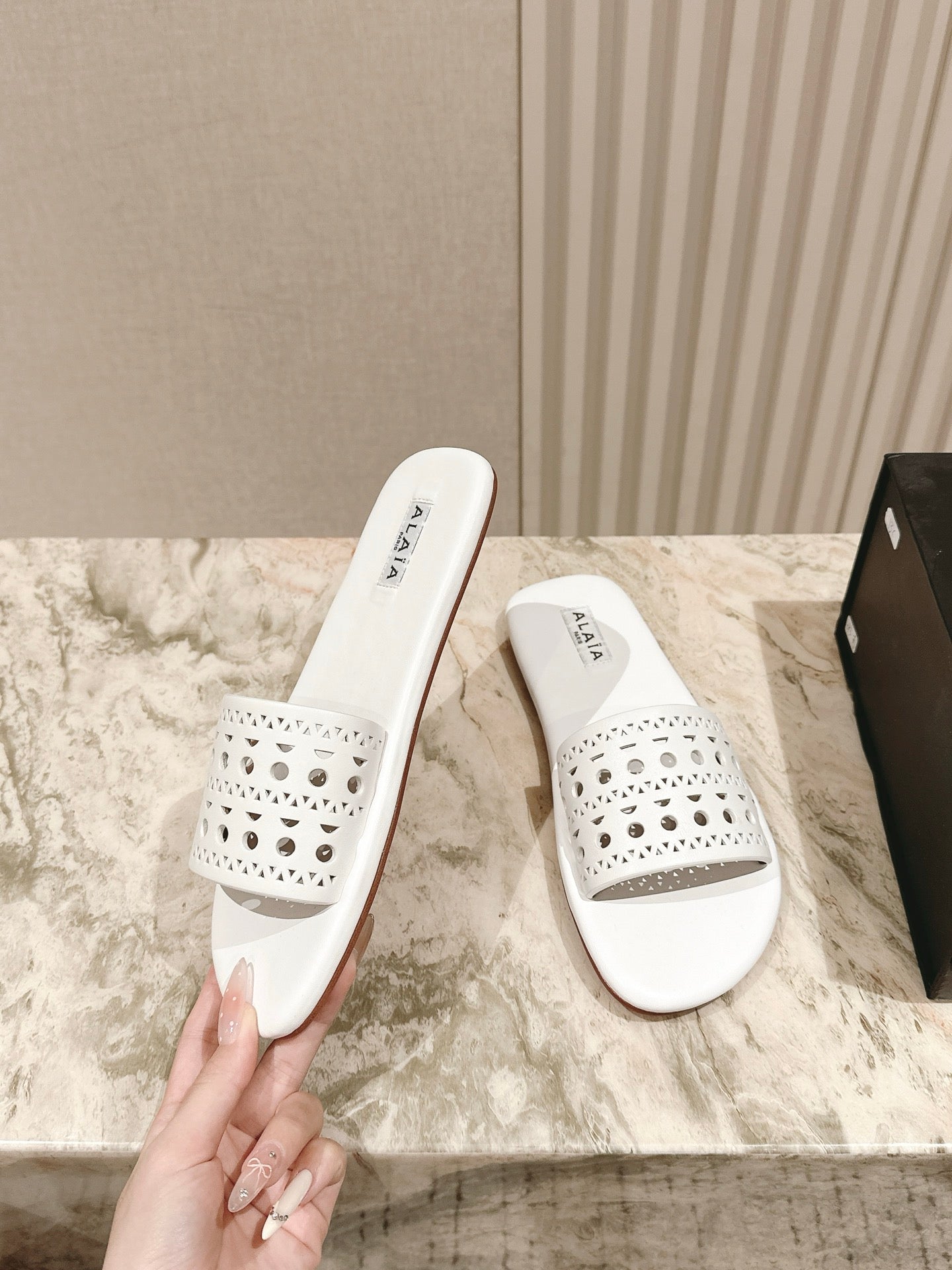Alaia 2025 Hollow Slippers White Leather 293655