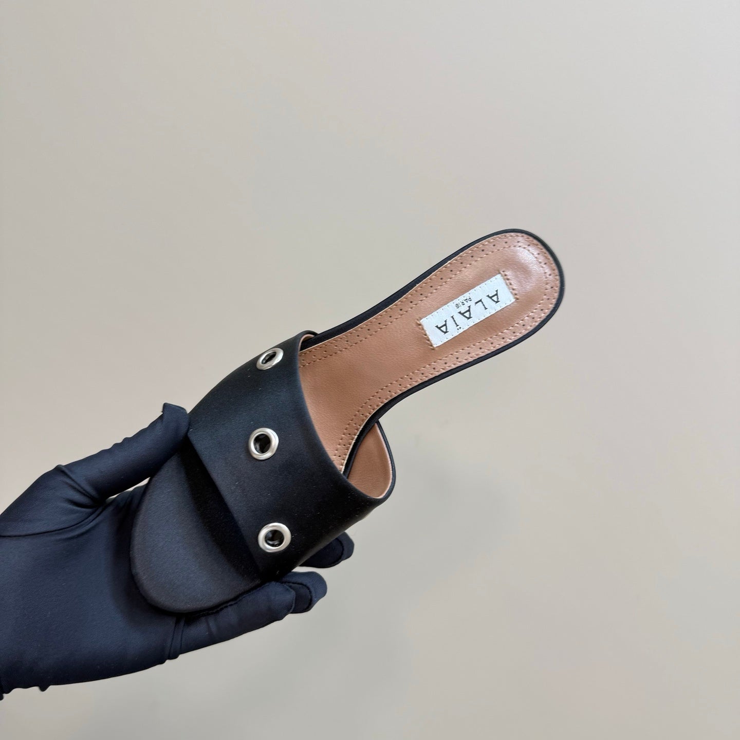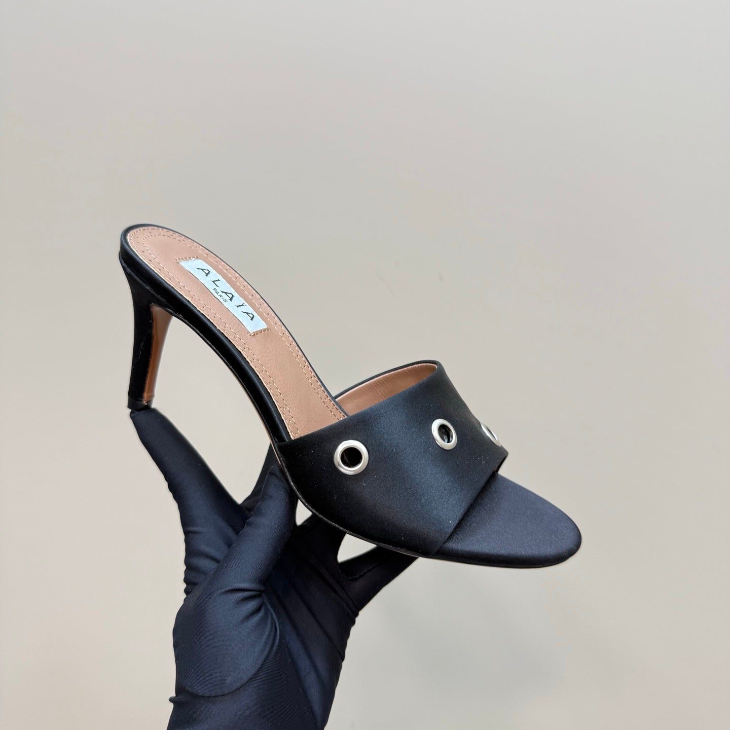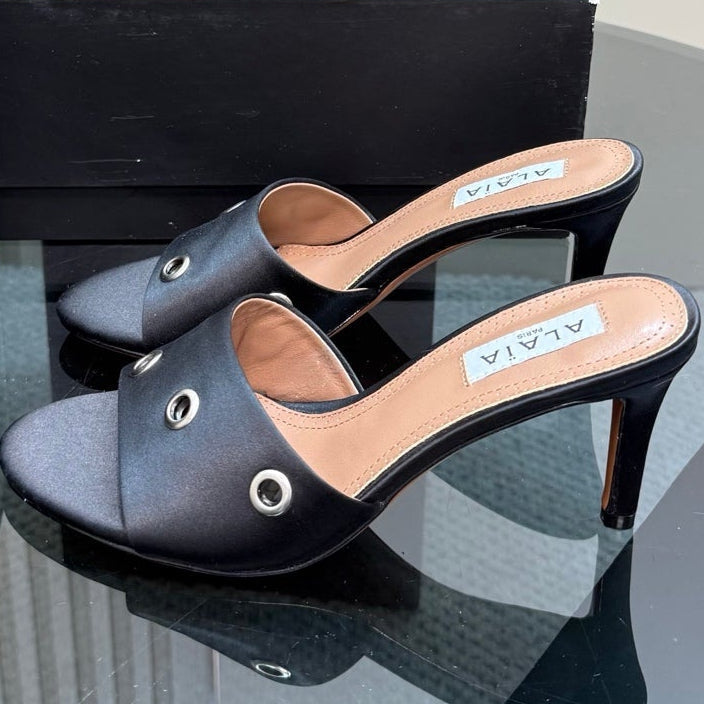 Alaia 2025 Oeillets Embellished Leather Sandals Black Lambskin 299669