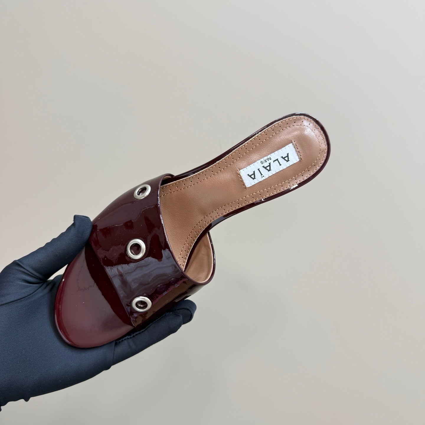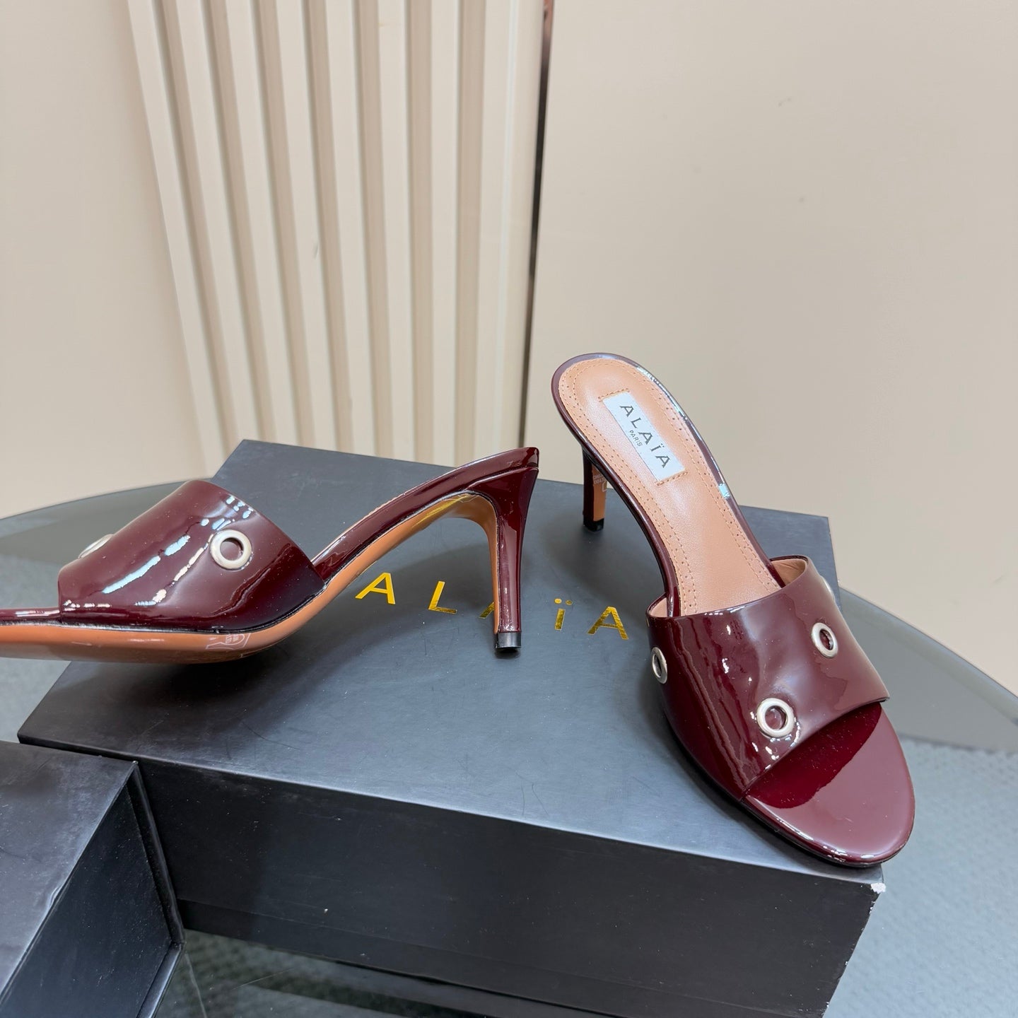 Alaia 2025 Oeillets Embellished Leather Sandals Ruby Red Lambskin 299666