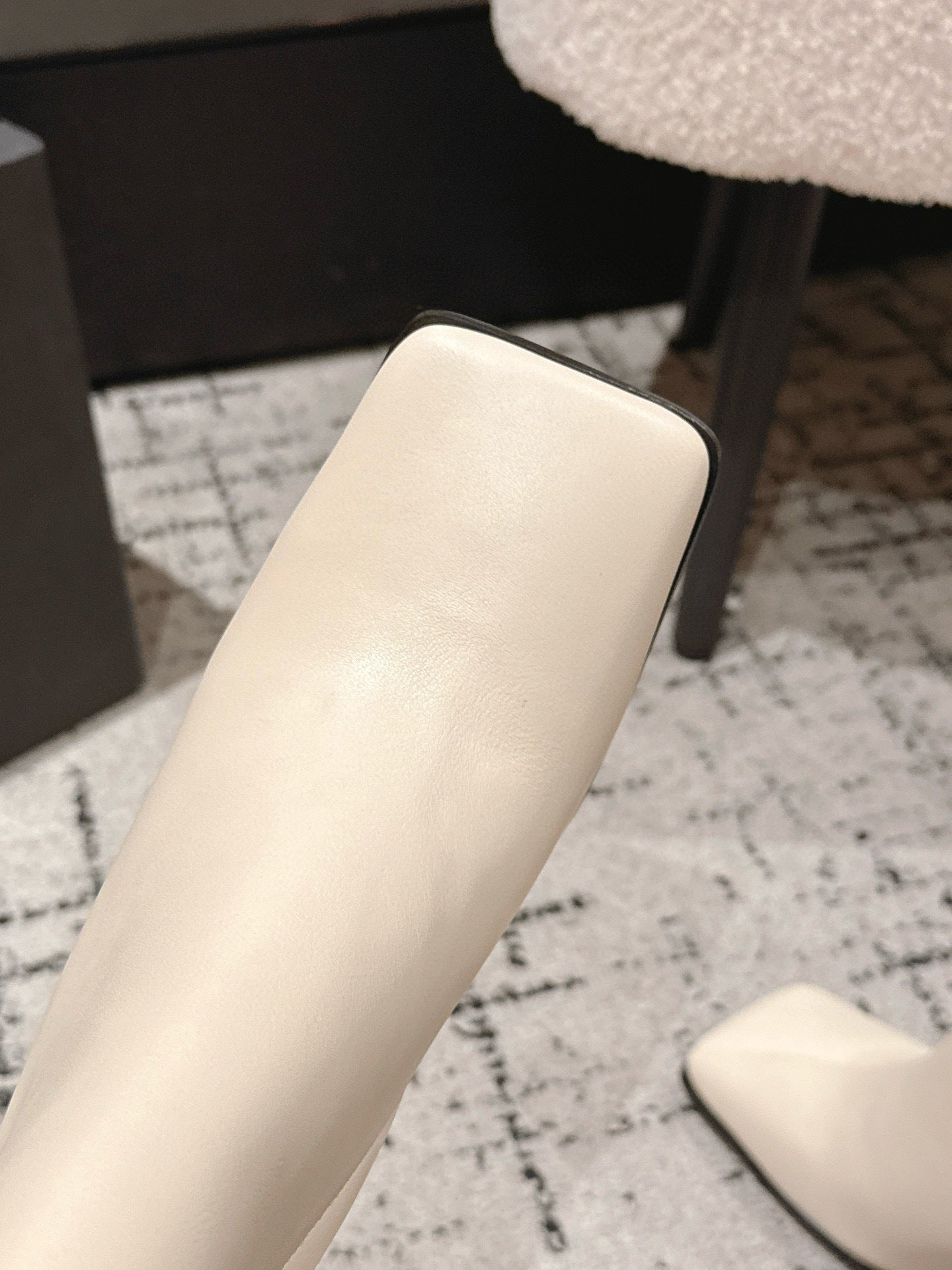 Alaia 2025 Square Toe High Heeled Ankle Boot Cream Calfskin 558664