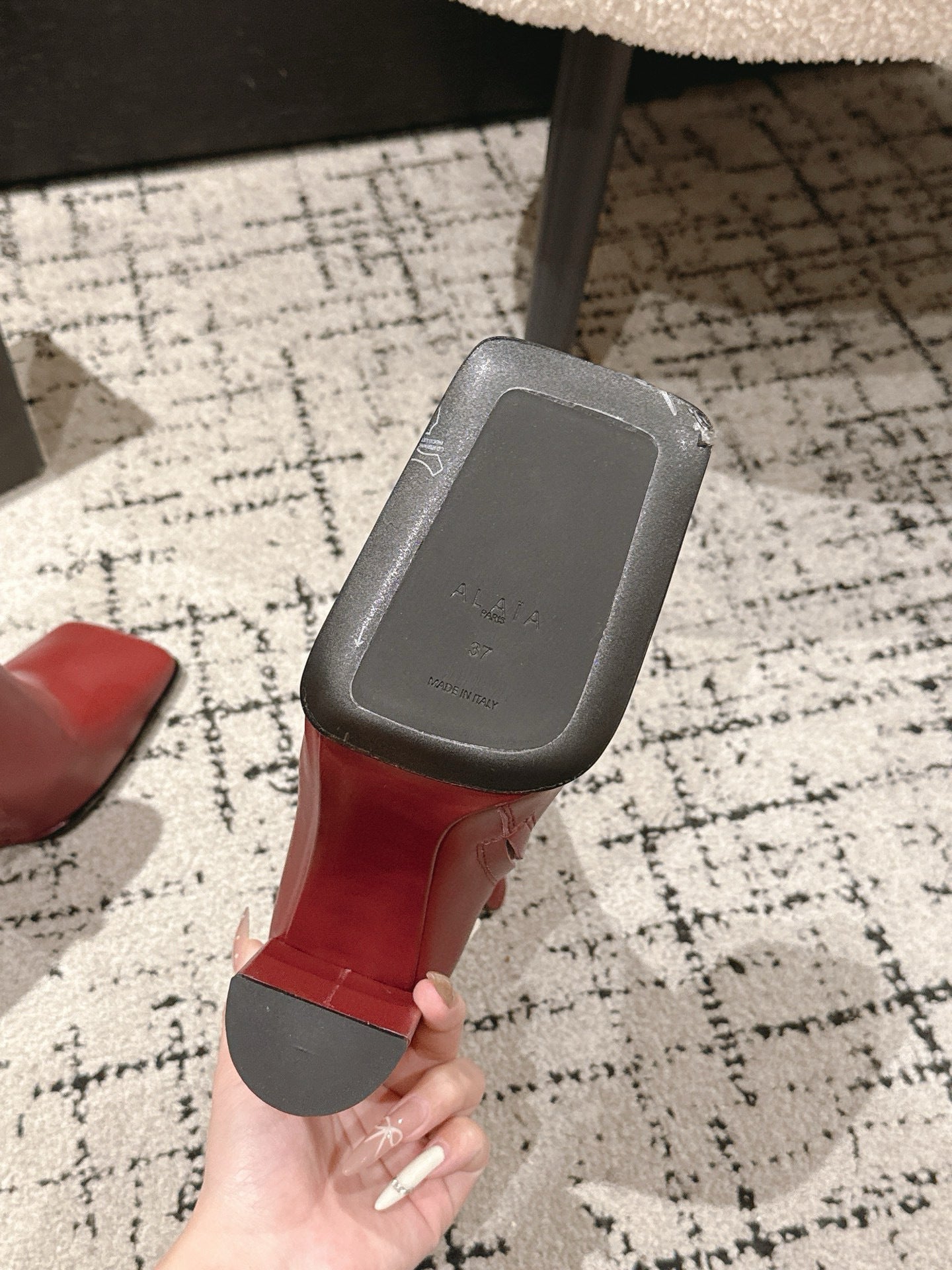 Alaia 2025 Square Toe High Heeled Ankle Boot Red Calfskin 558665