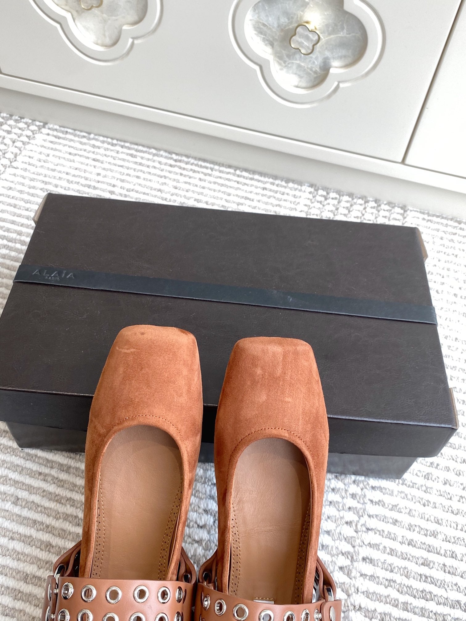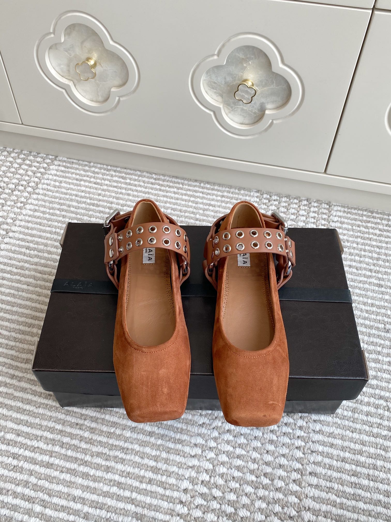 Alaia 25 Biker Ballet Flats Brown Suede 291057