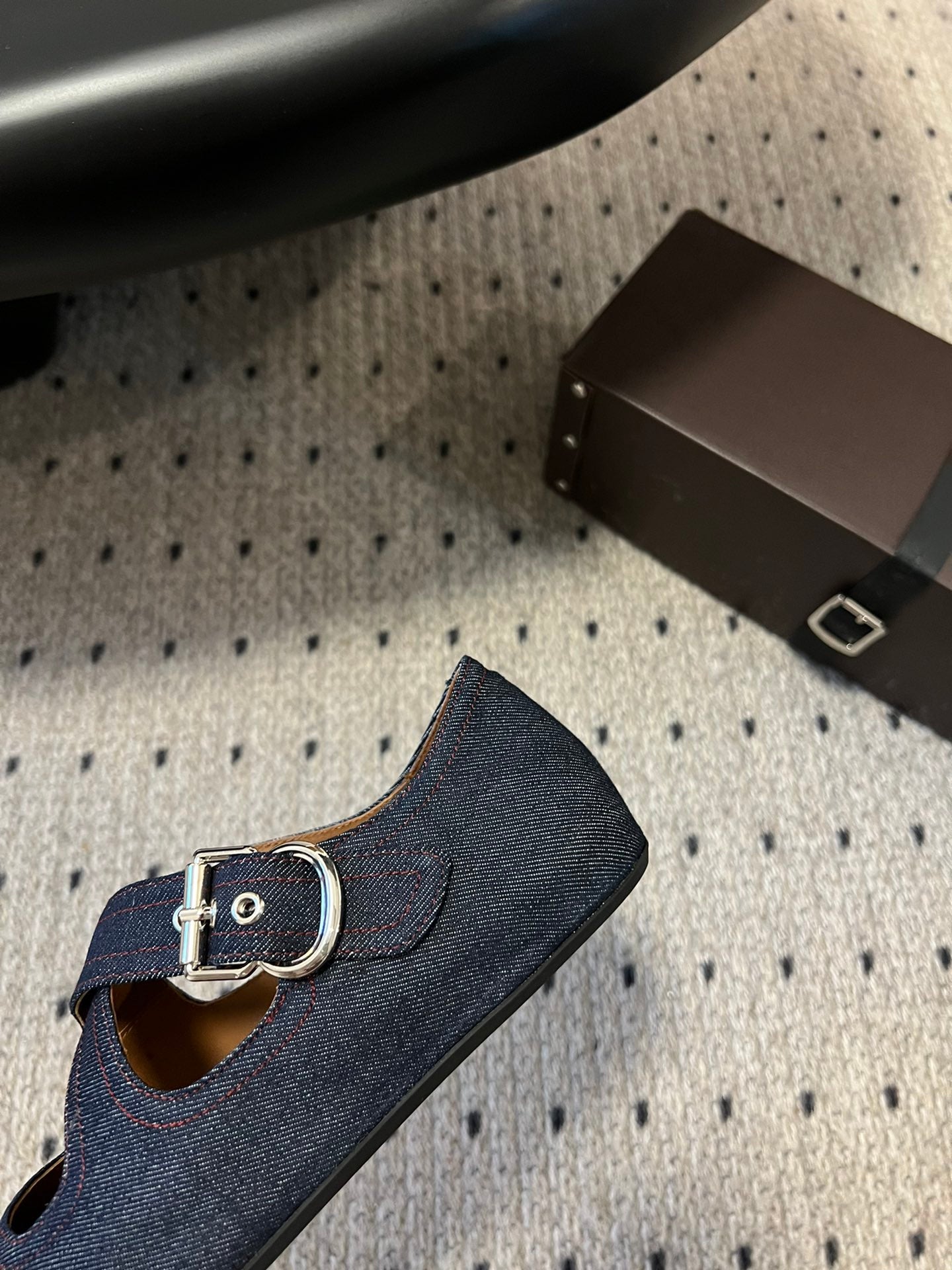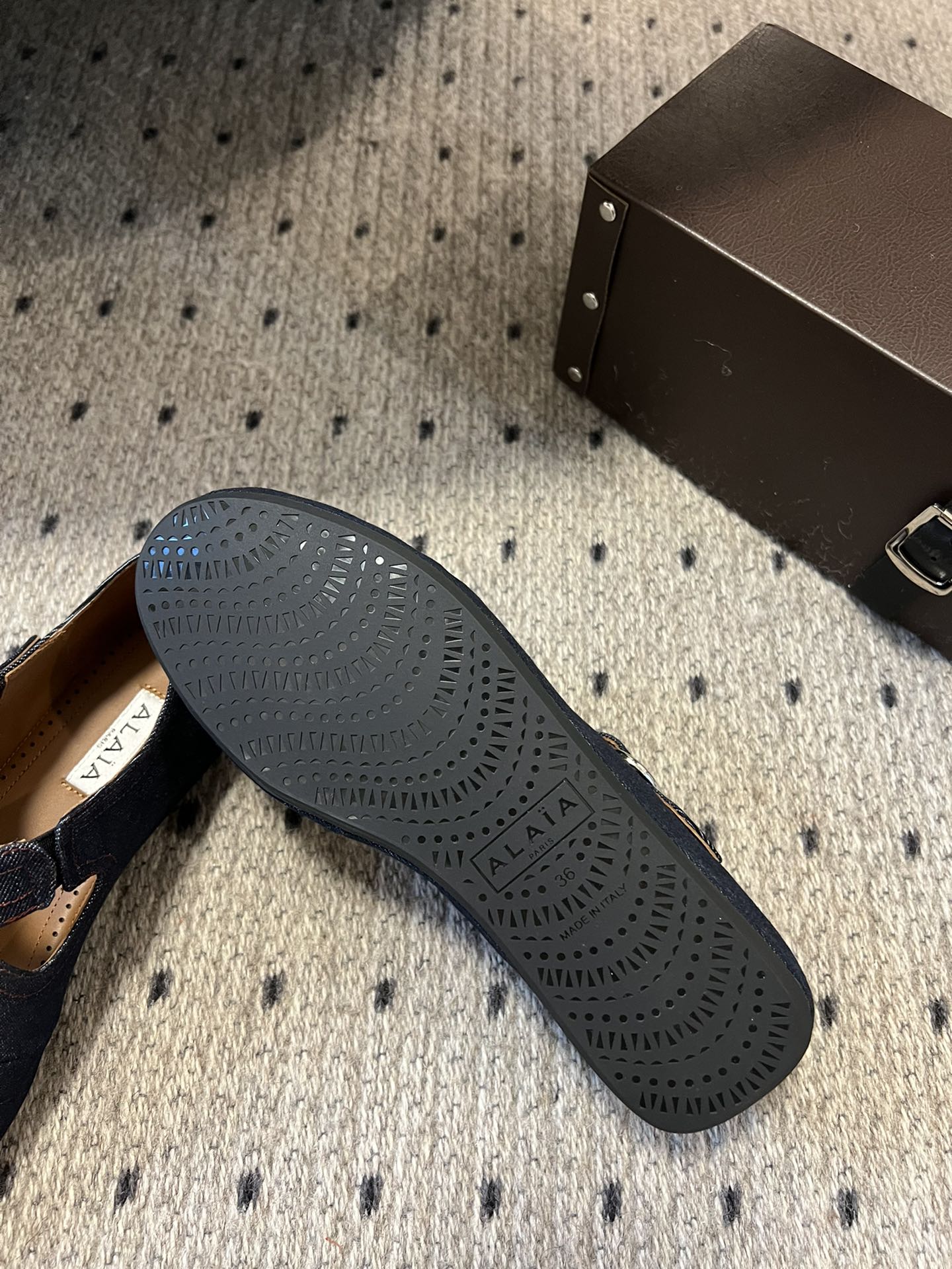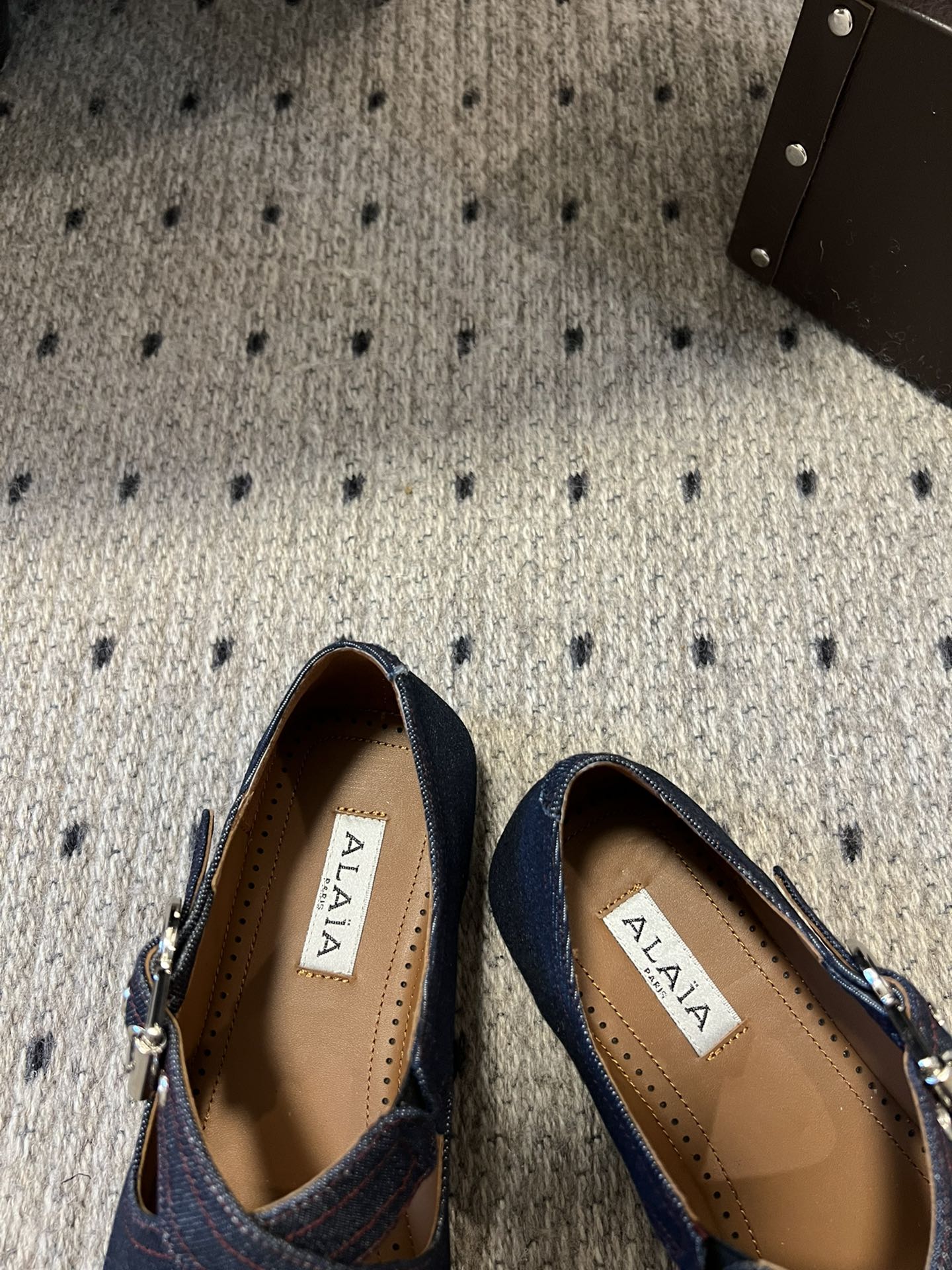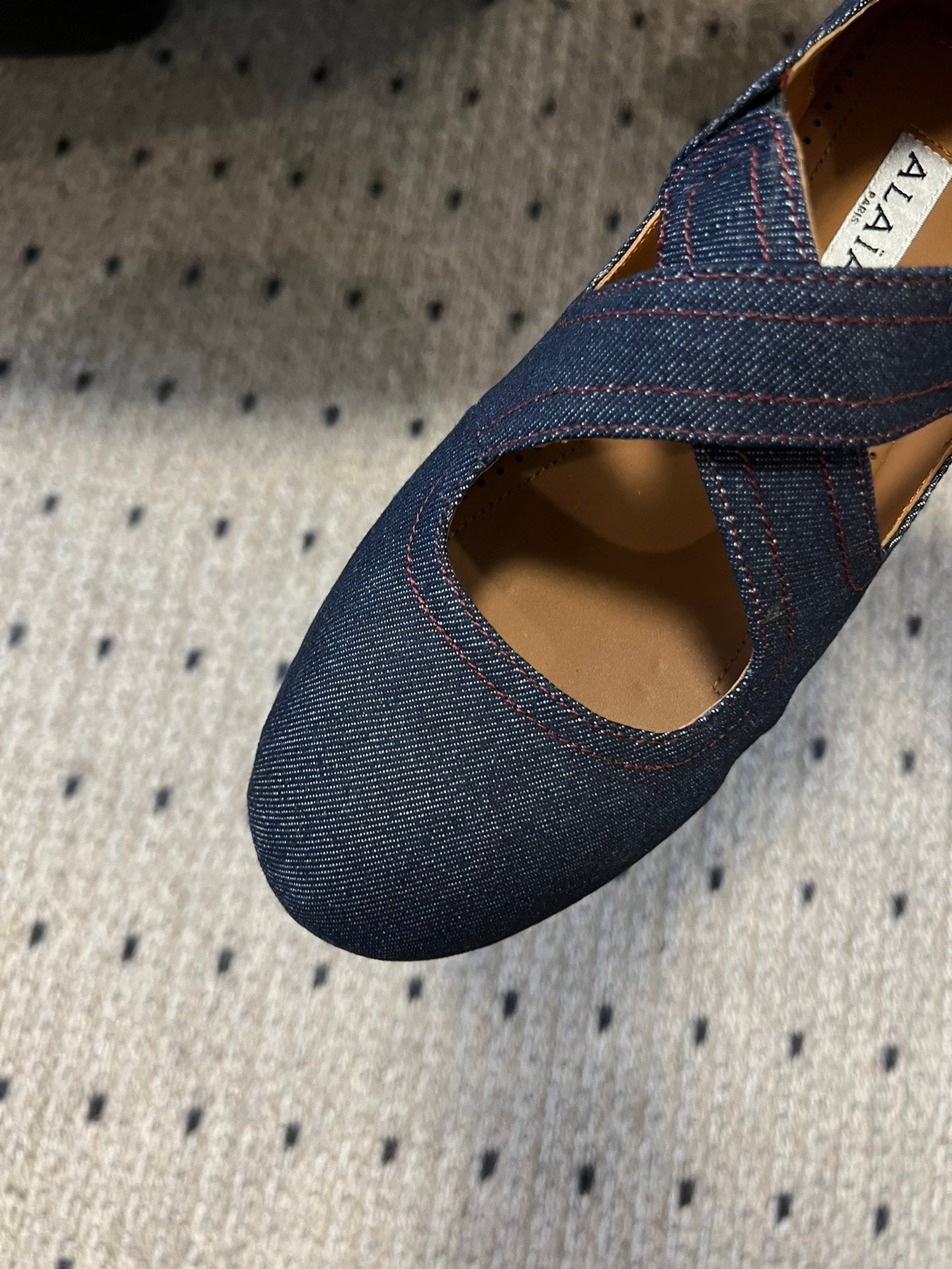 Alaia 25 Criss Cross With Stud Ballet Flats Denim Blue Sheepskin 303695