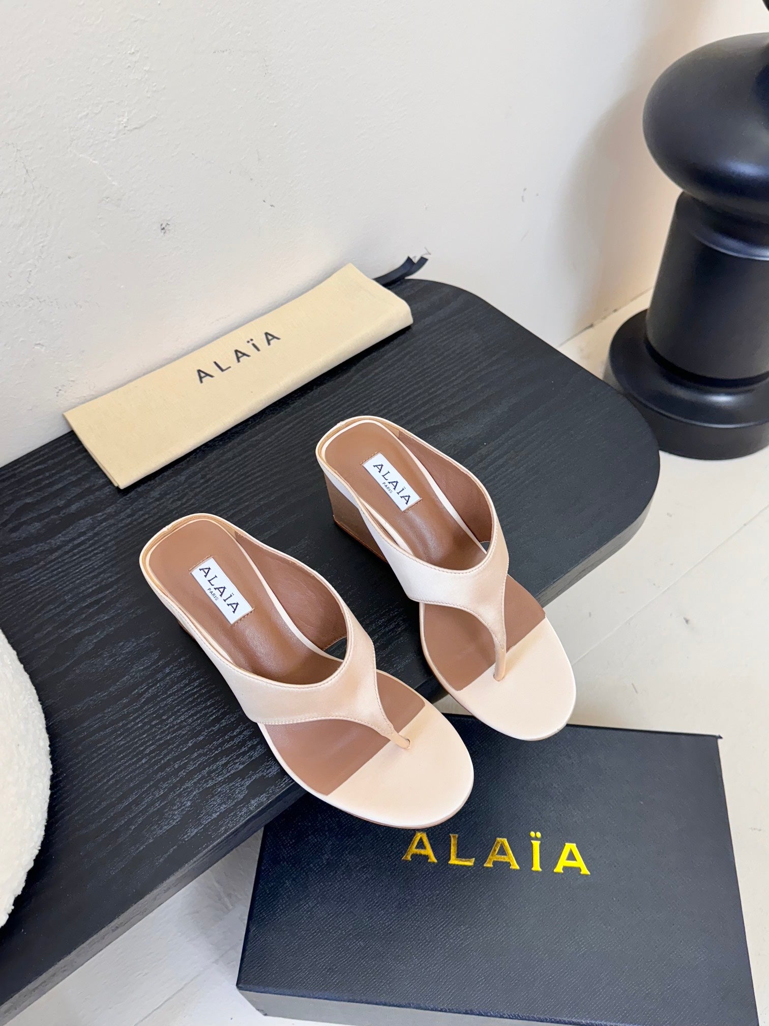 Alaia 25 Cube Thong Mules Nude Satin Sheepskin 297037