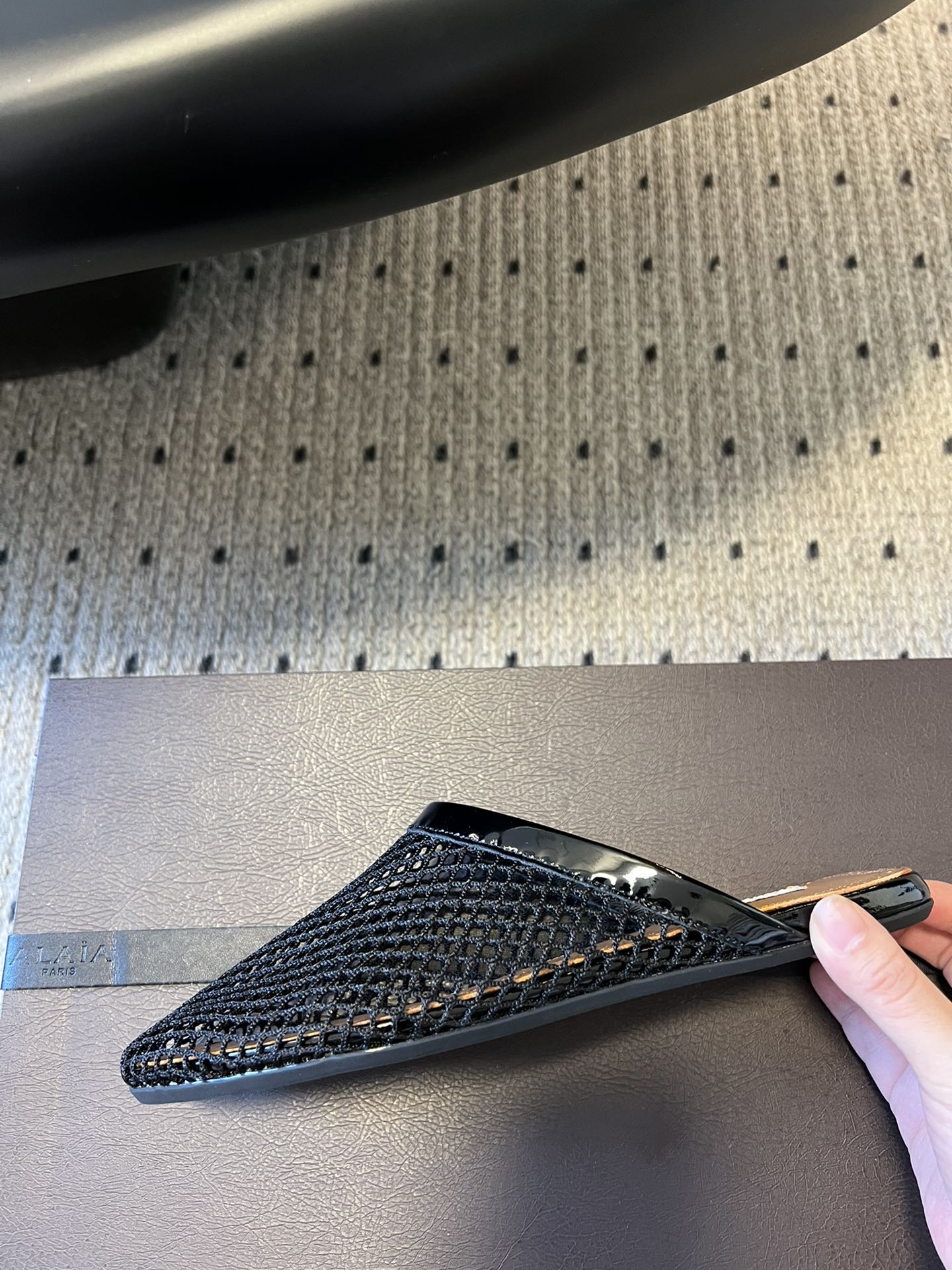 Alaia 25 Fishnet Flat Mules Black Lampskin 303685