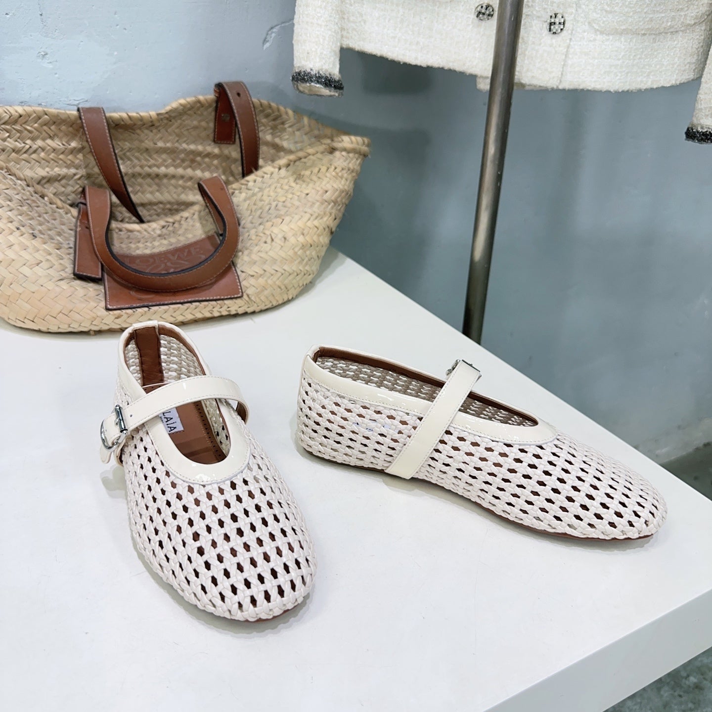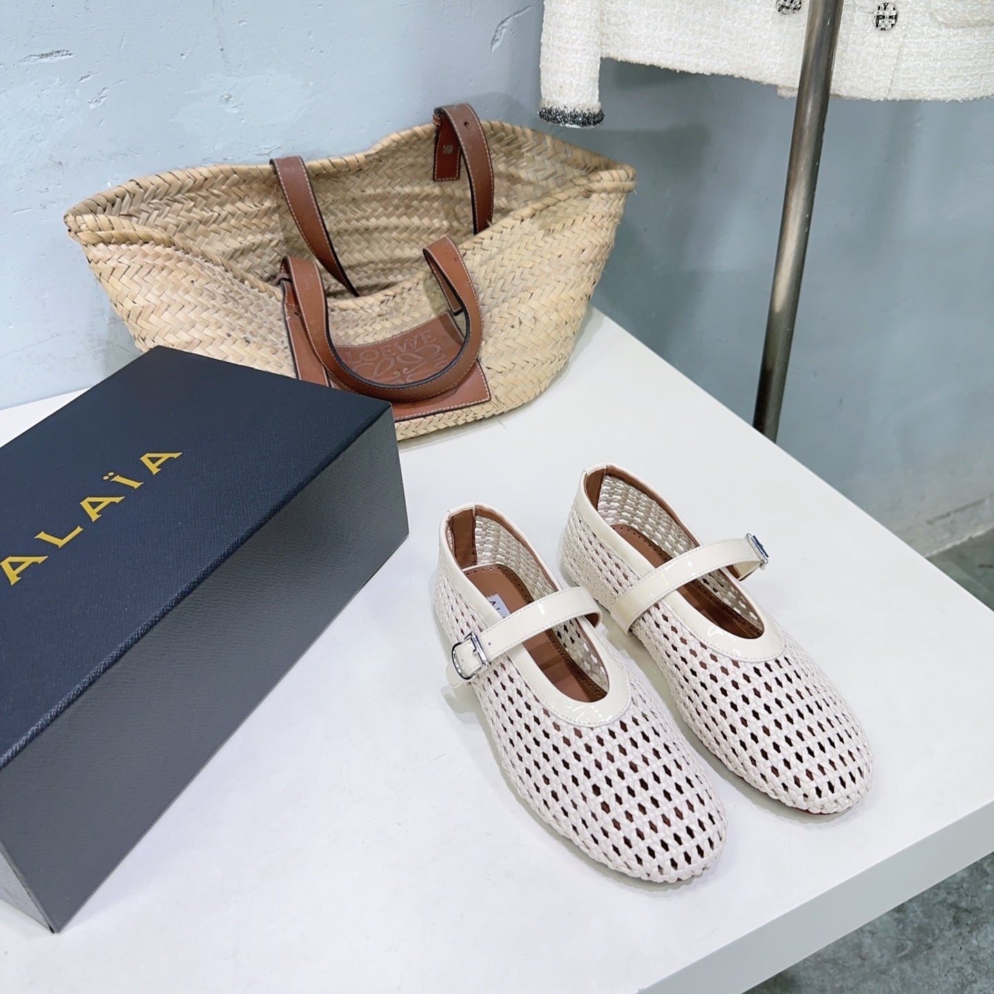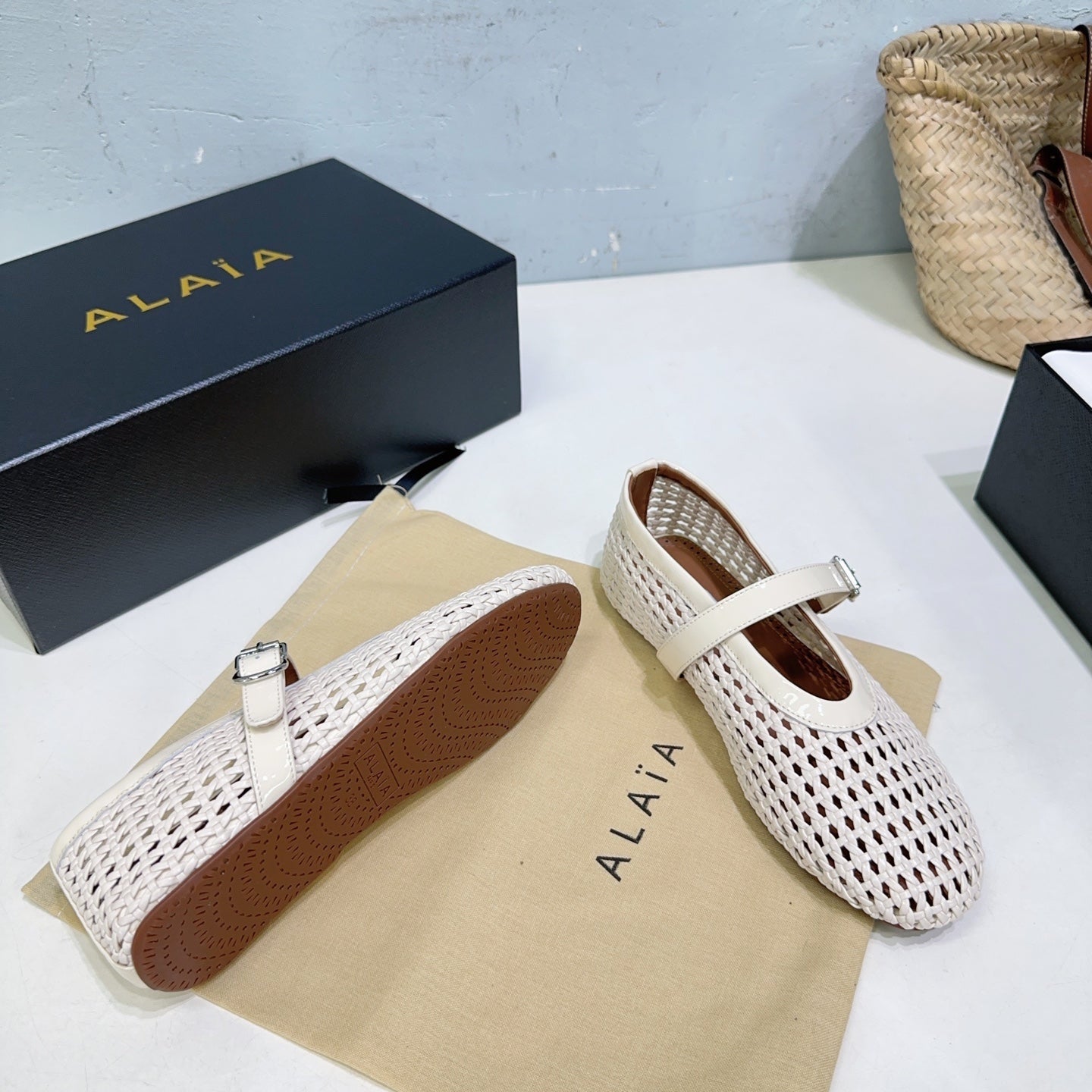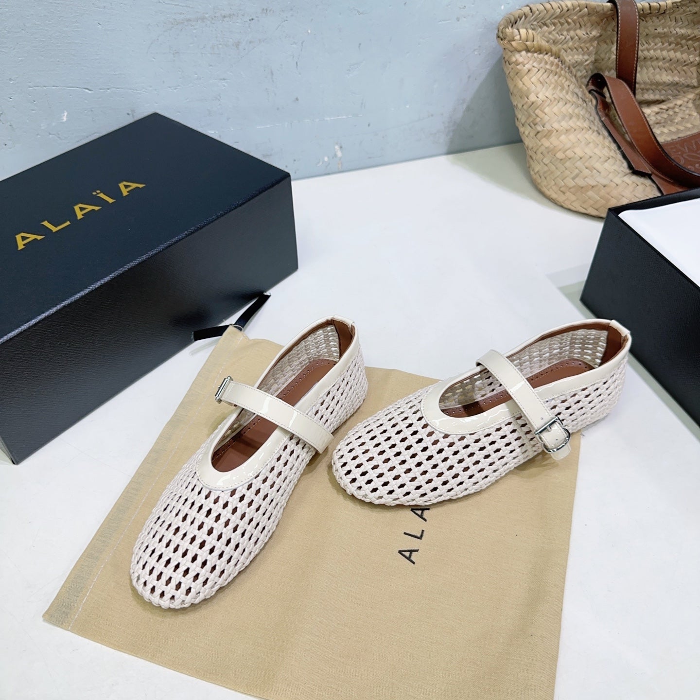 Alaia 25 Marry Janes Ballet Flats Ivory Wool Sheepskin 300454