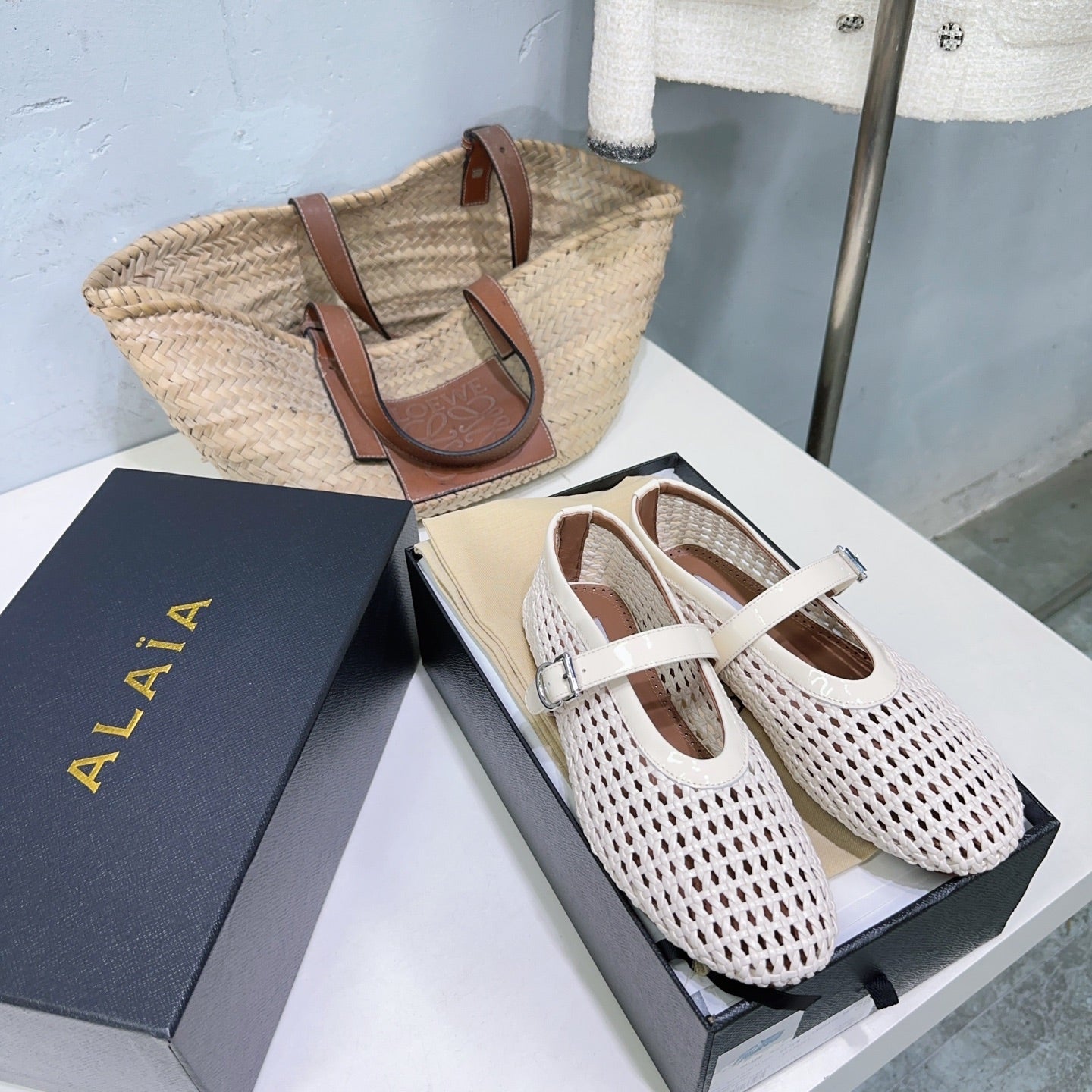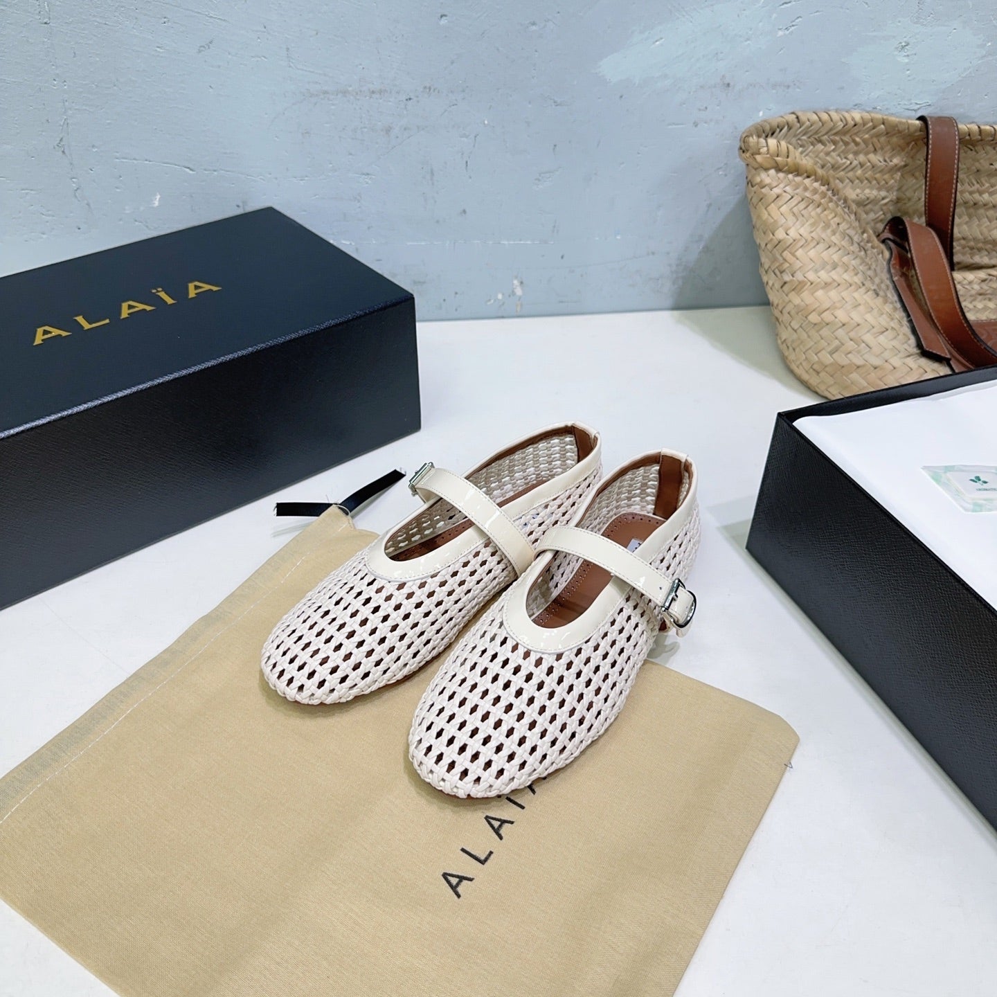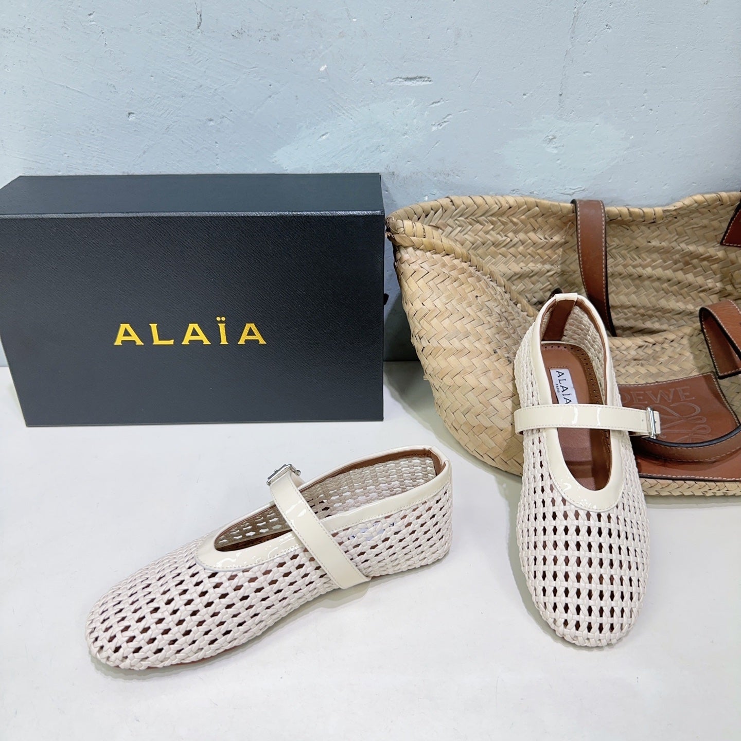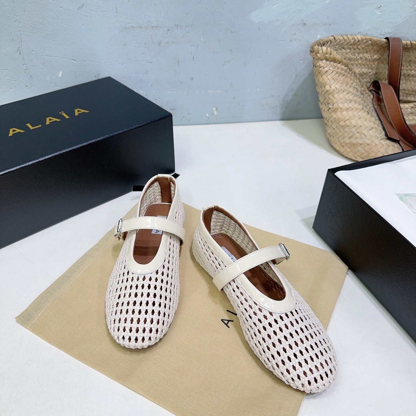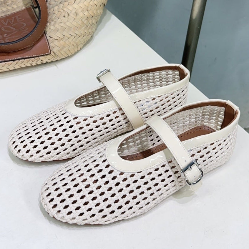 Alaia 25 Marry Janes Ballet Flats Ivory Wool Sheepskin 300454