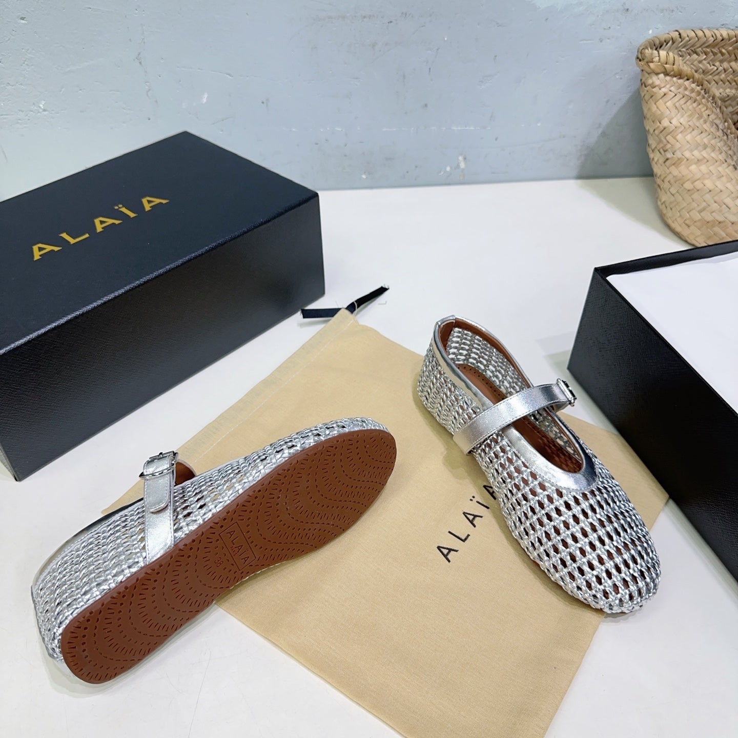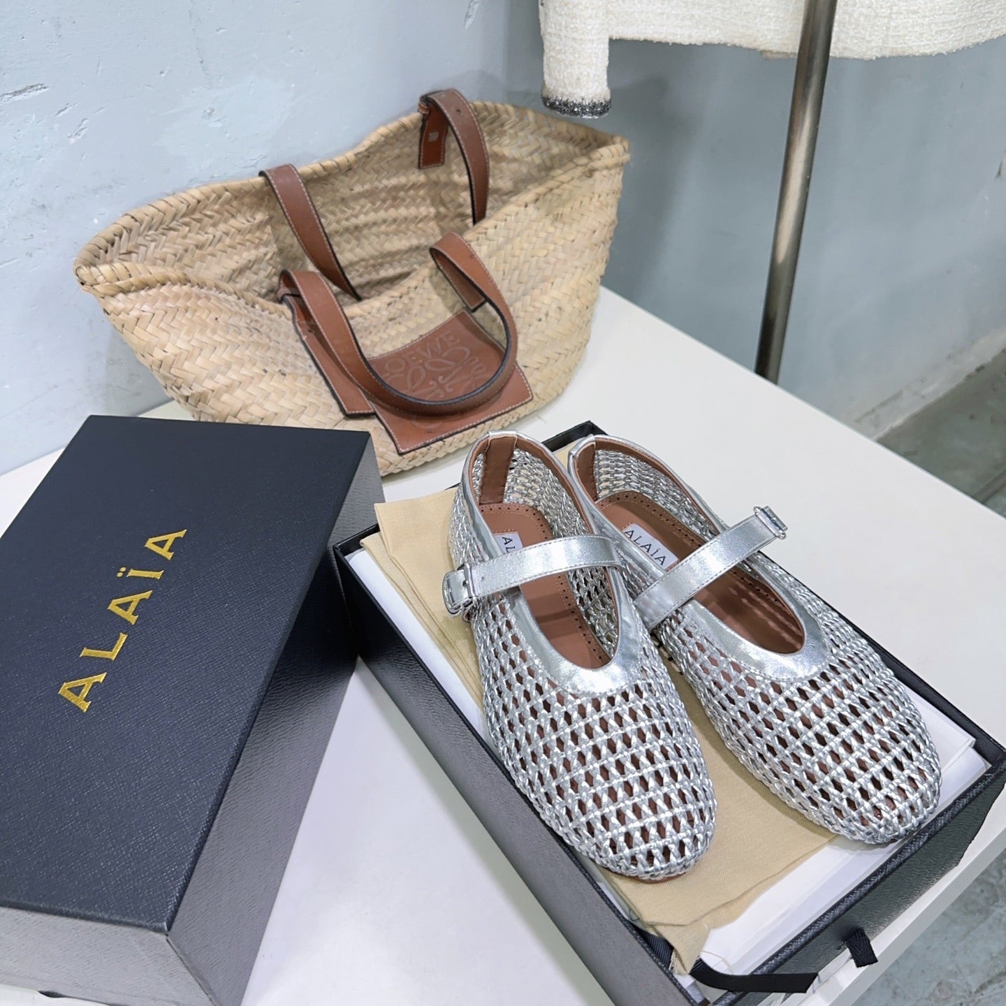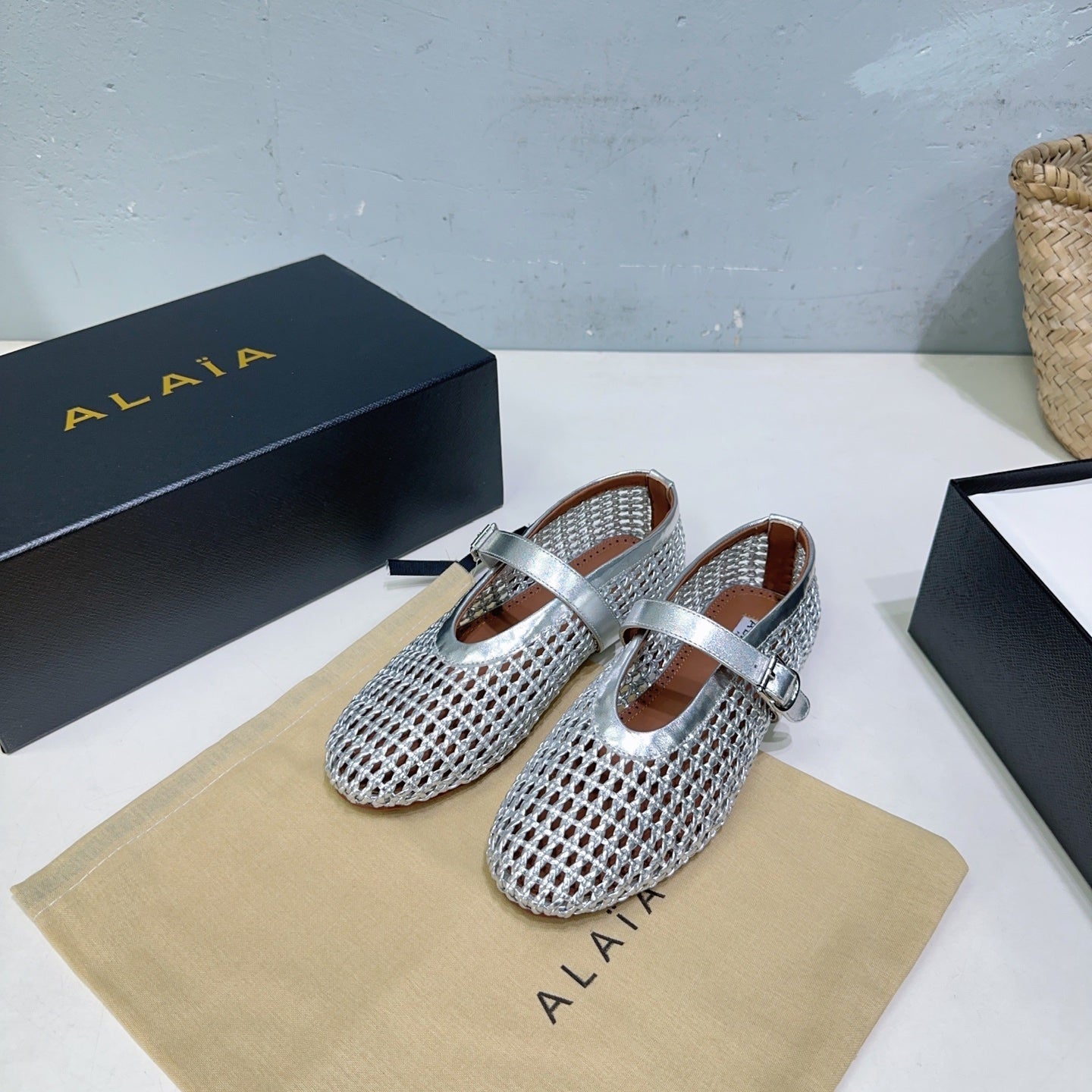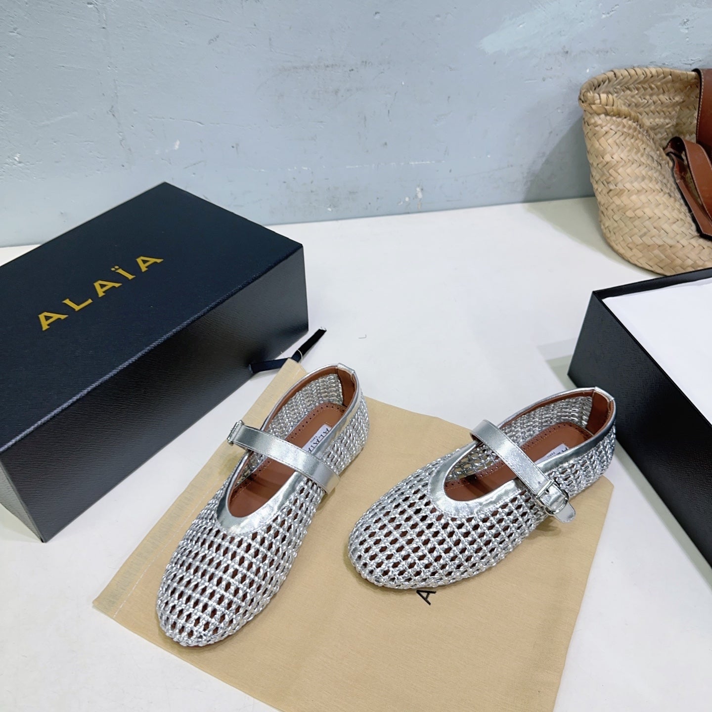 Alaia 25 Marry Janes Ballet Flats Silver Wool Sheepskin 300457
