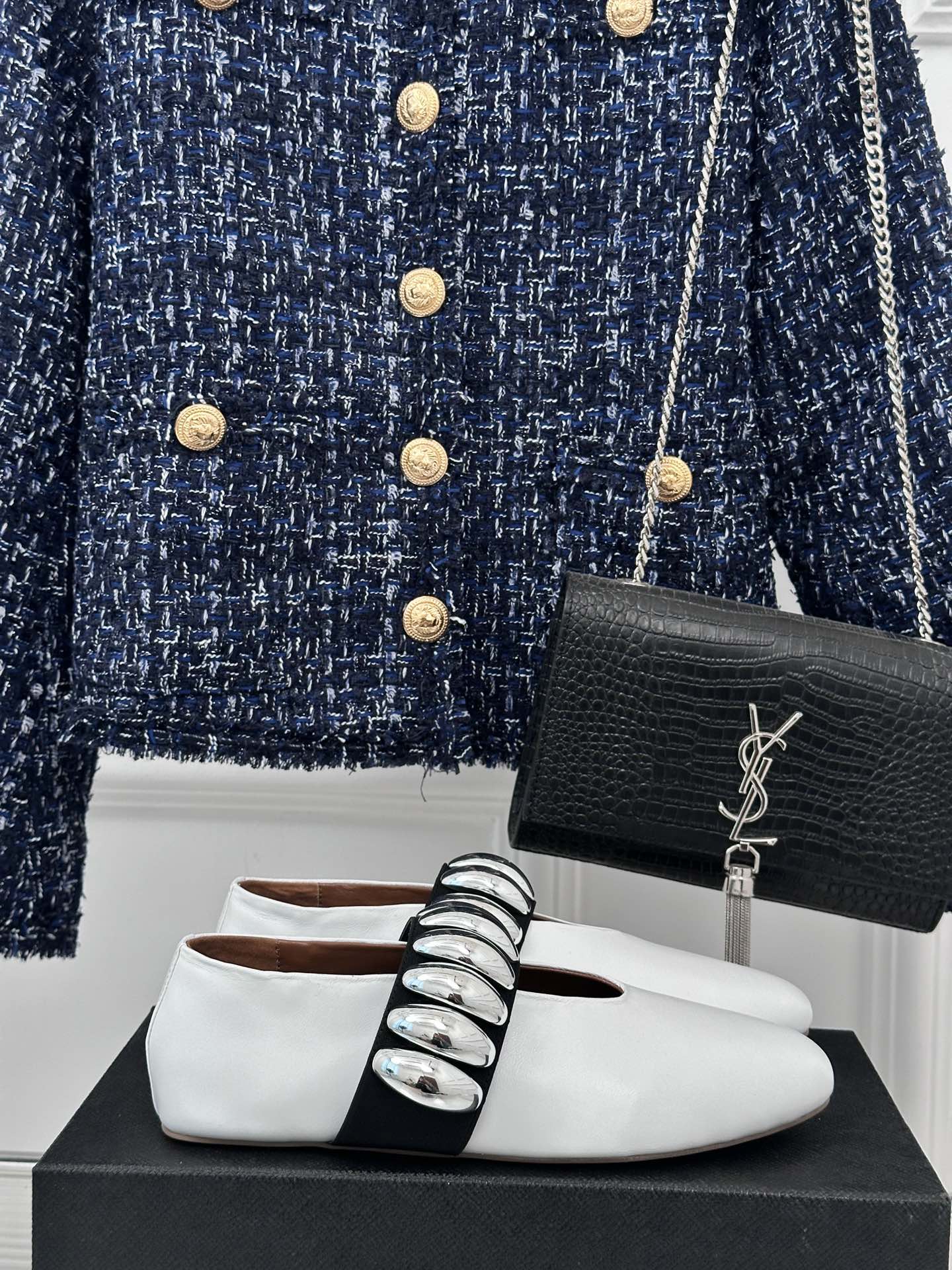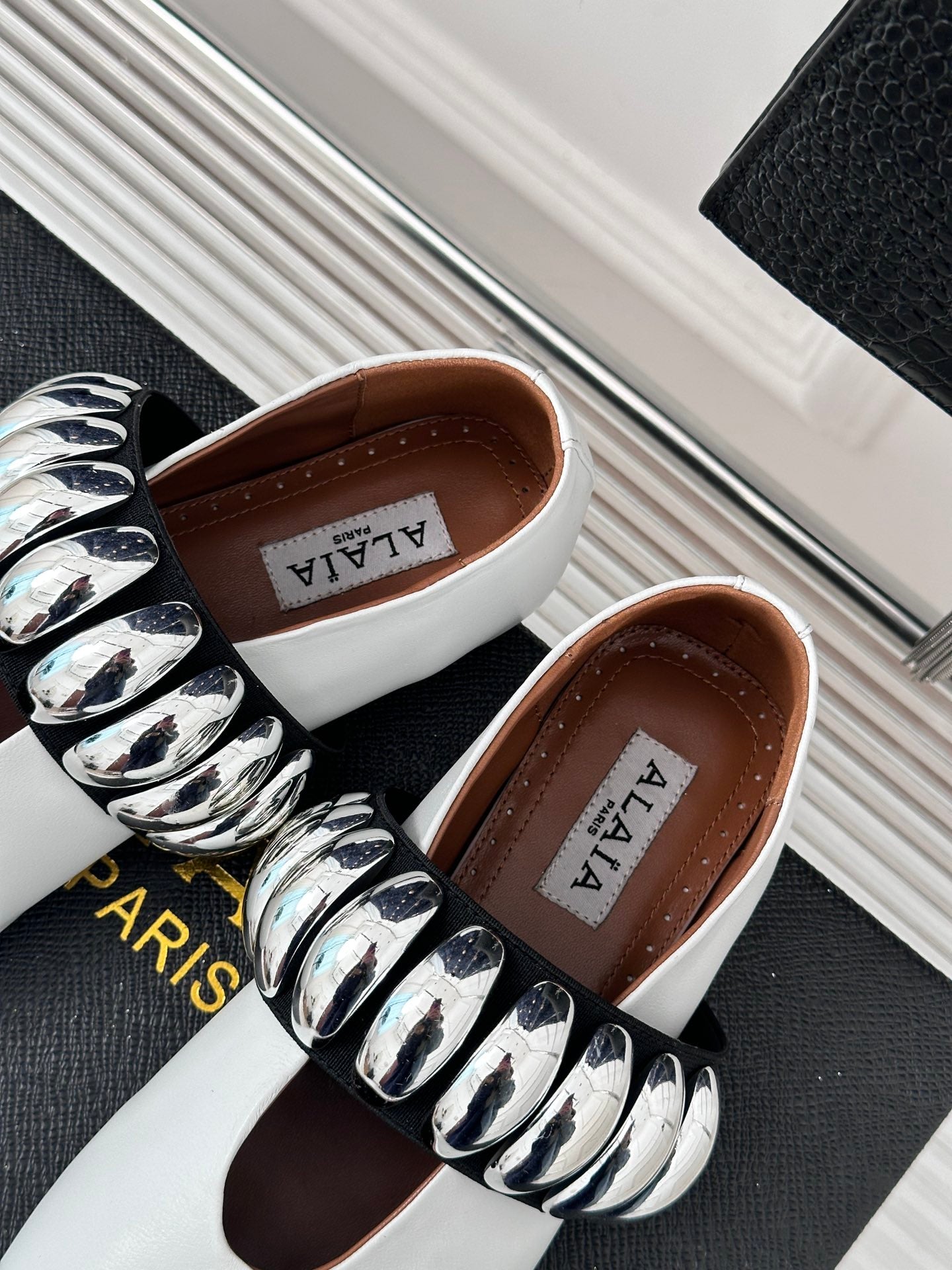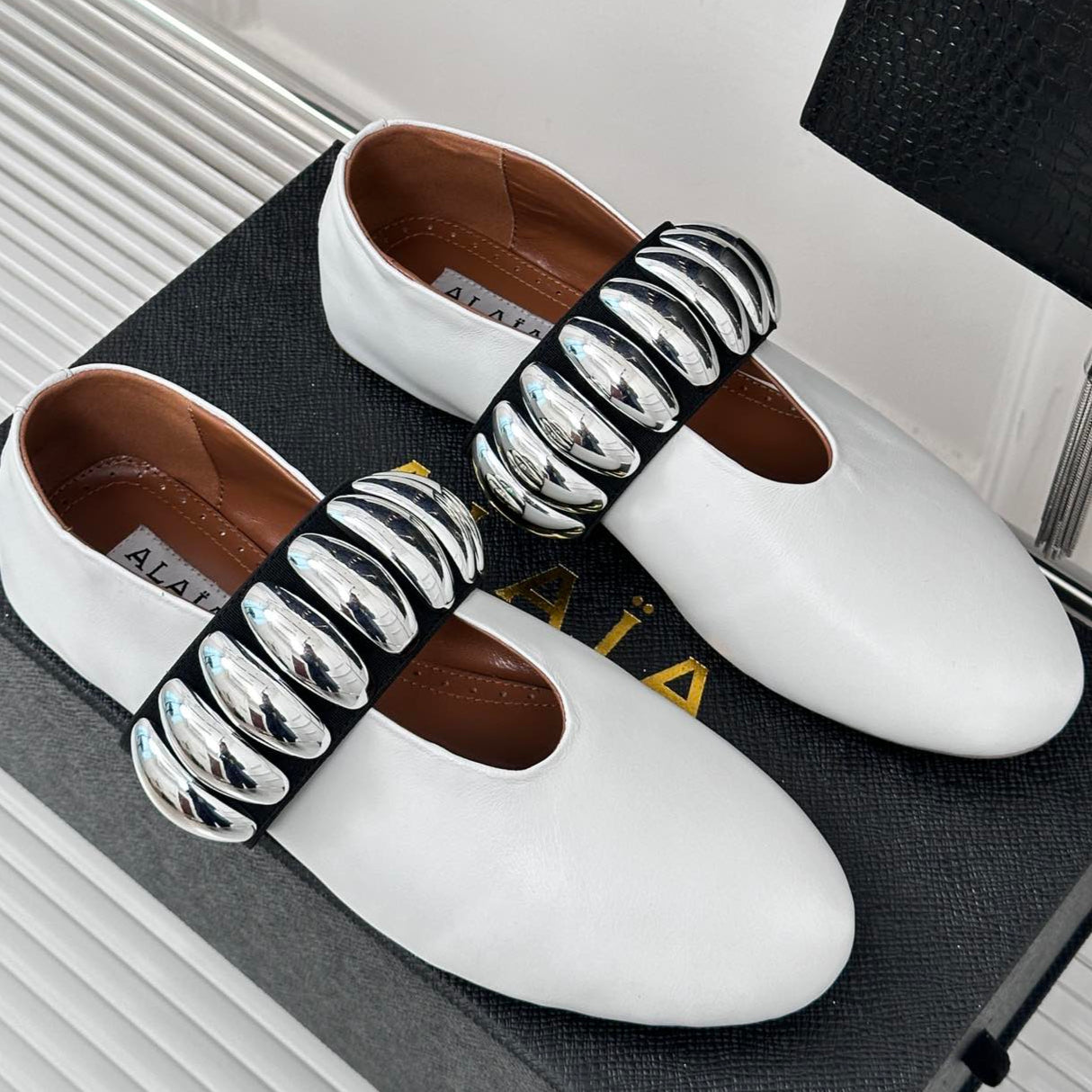 Alaia 25 Mary Jane Jewel Ballet Flats White Calfskin 293246