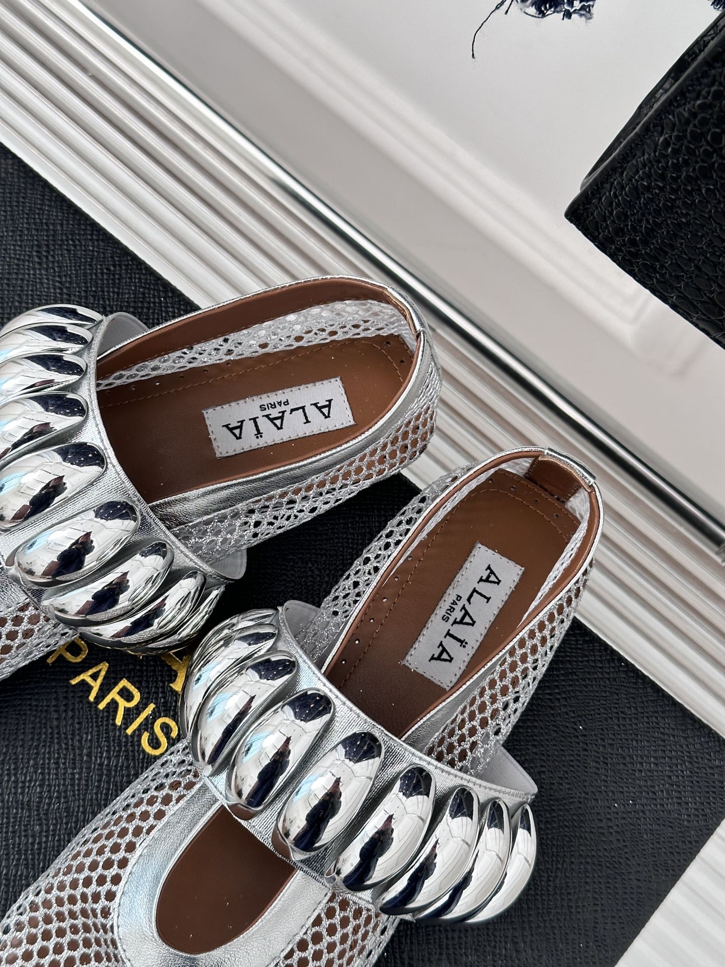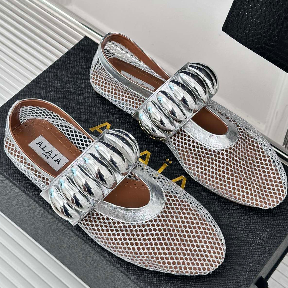 Alaia 25 Mary Jane Mesh Ballet Flats Silver Calfskin 293250