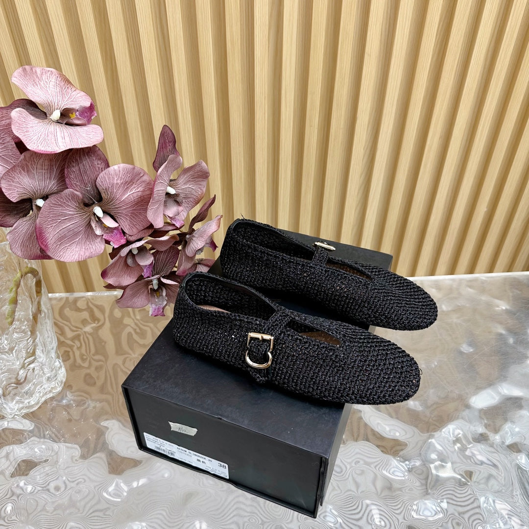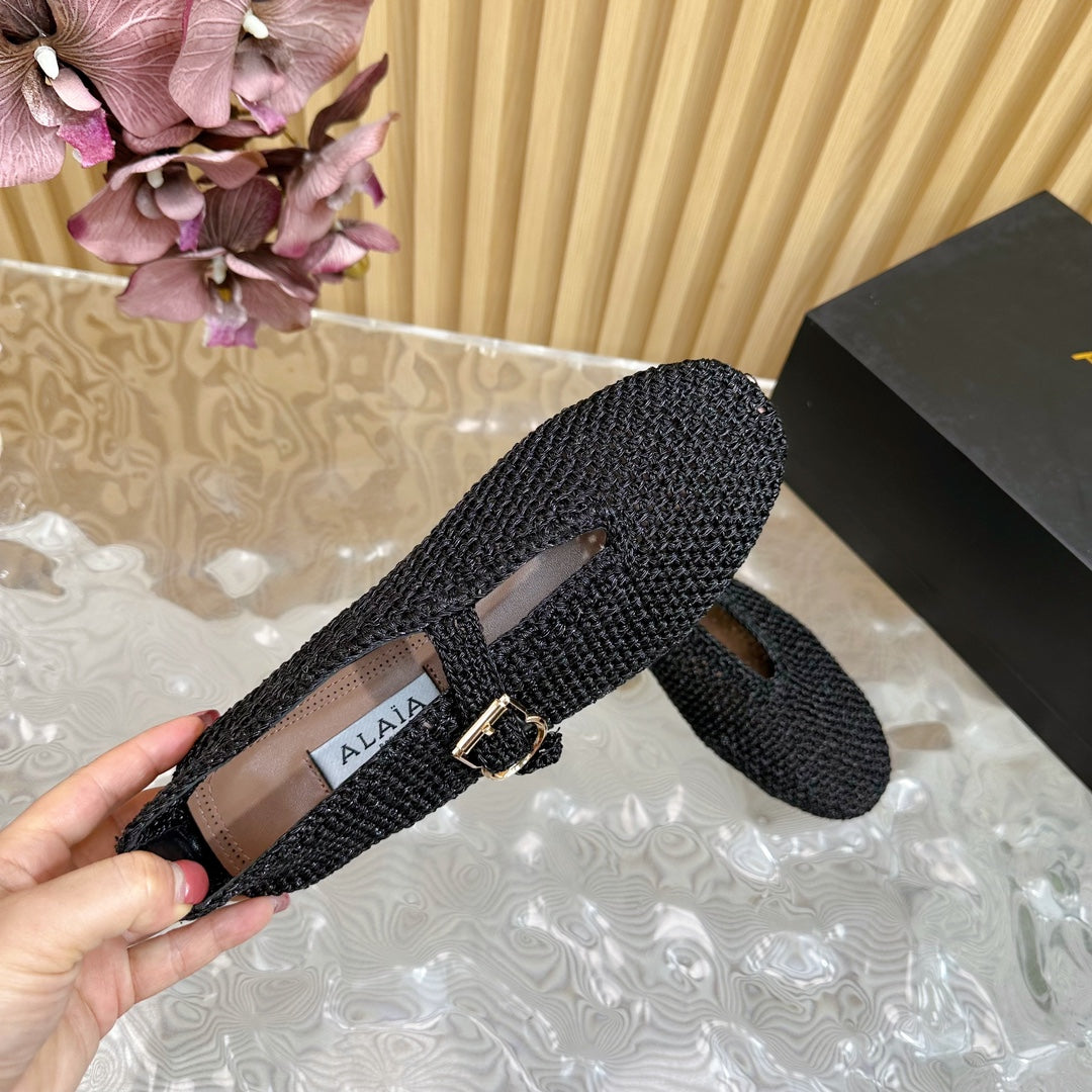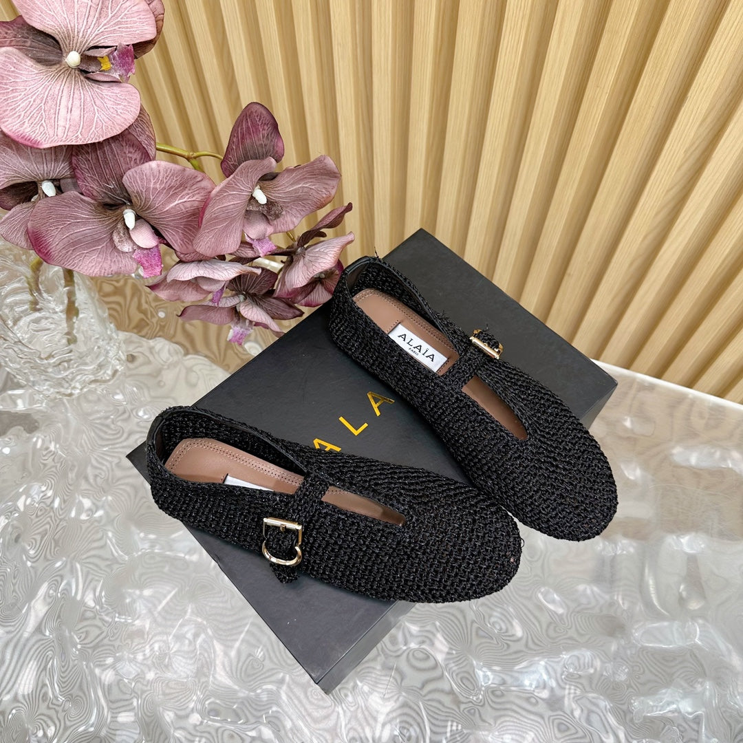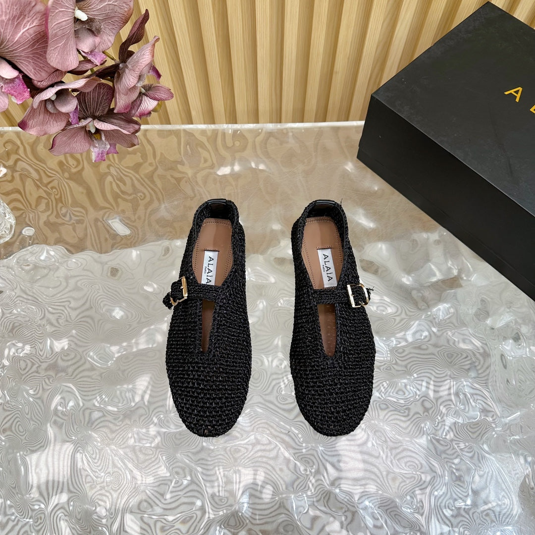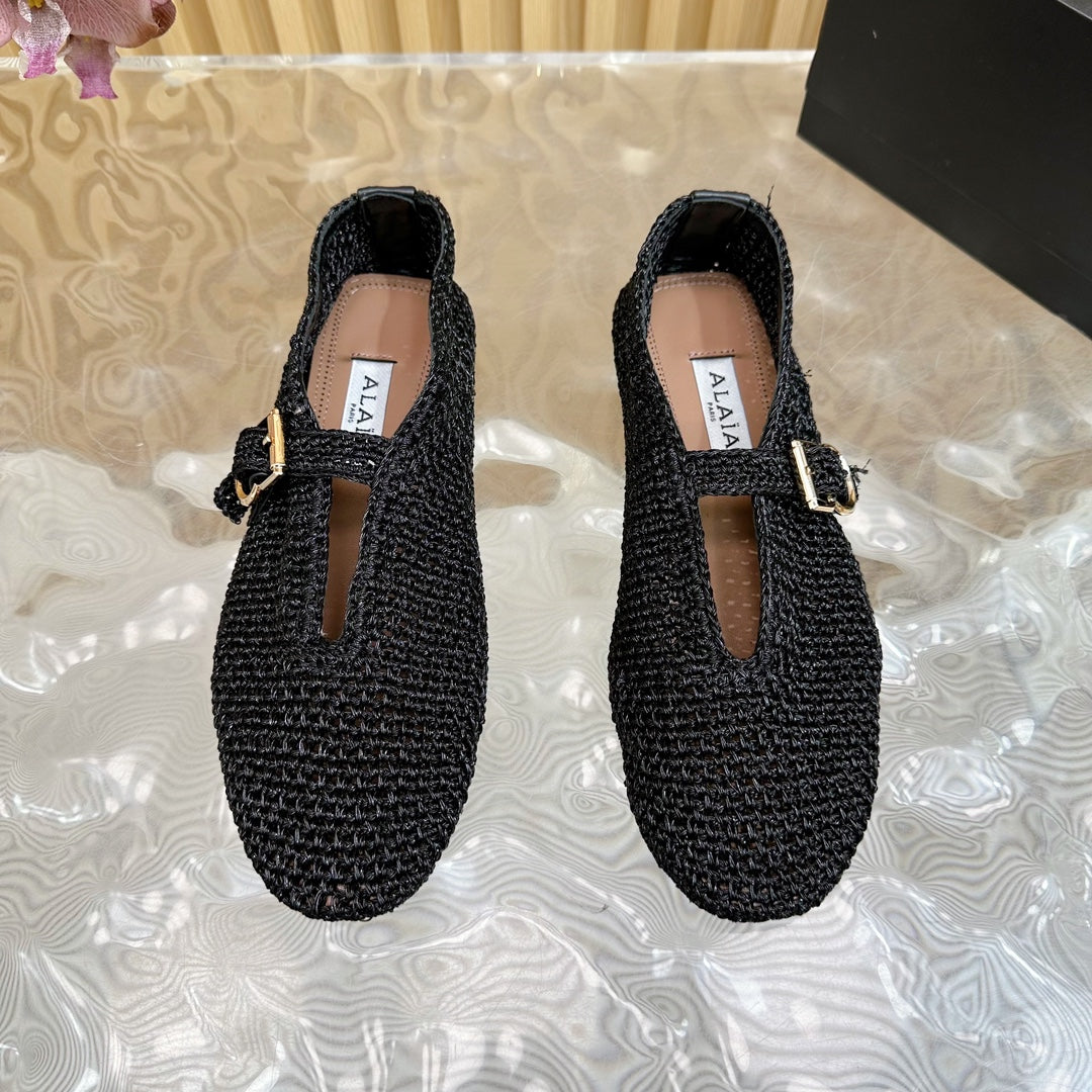 Alaia Ballet Flats In Black Stretch Woven Sedge 102276