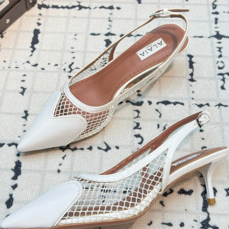 Alaia Heart 50mm Heels Slingbacks White Sheepskin 800931