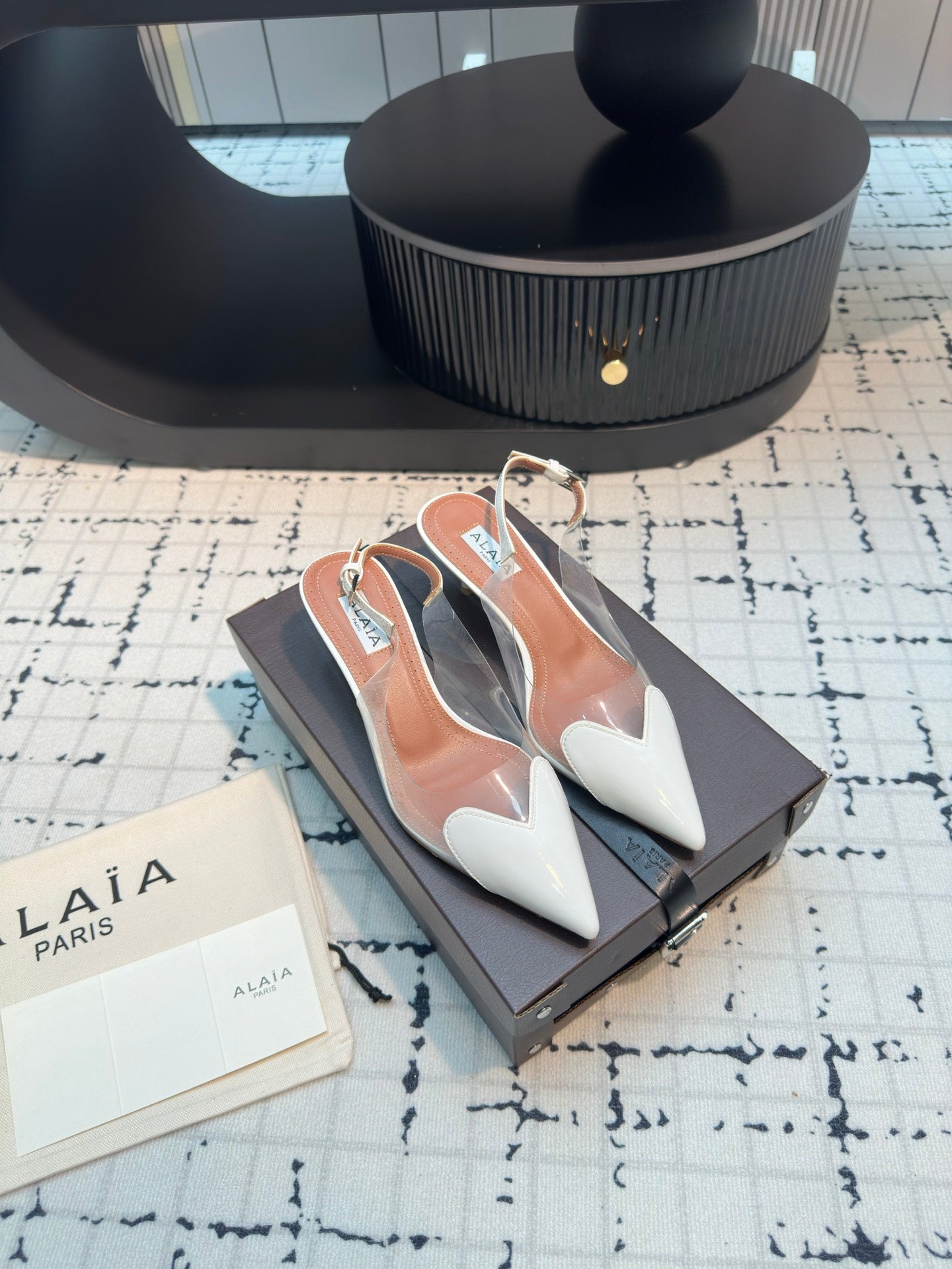 Alaia Heart 50mm Heels Slingbacks White Sheepskin 810202