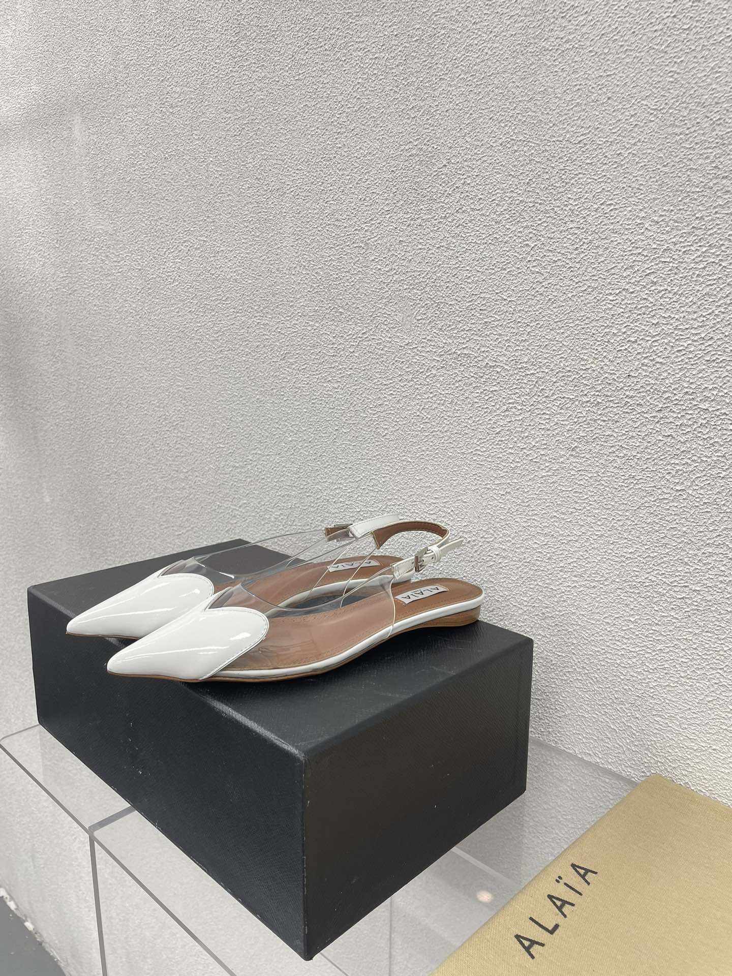 ALAIA LE COEUR FLAT SLINGBACKS IN WHITE PATENT LAMBSKIN