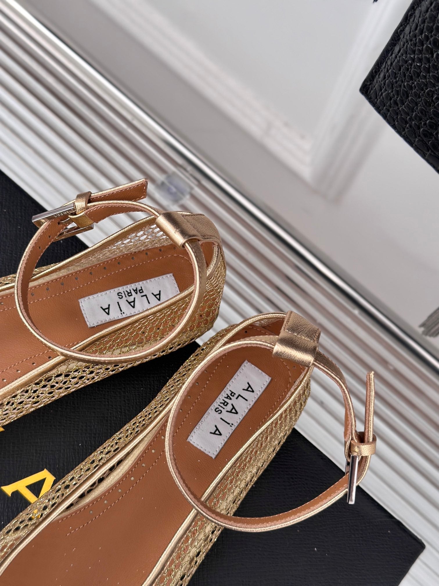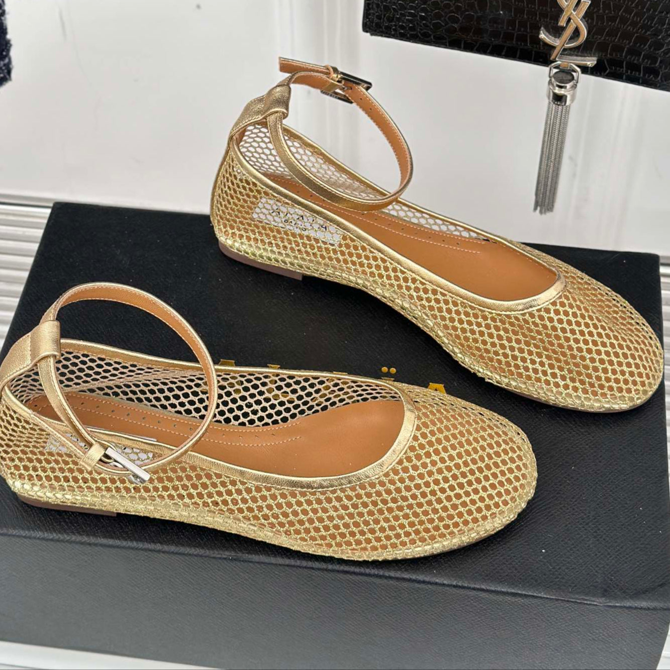 Alaia Mary Jane Ballet Flat Gold Lambskin 293237
