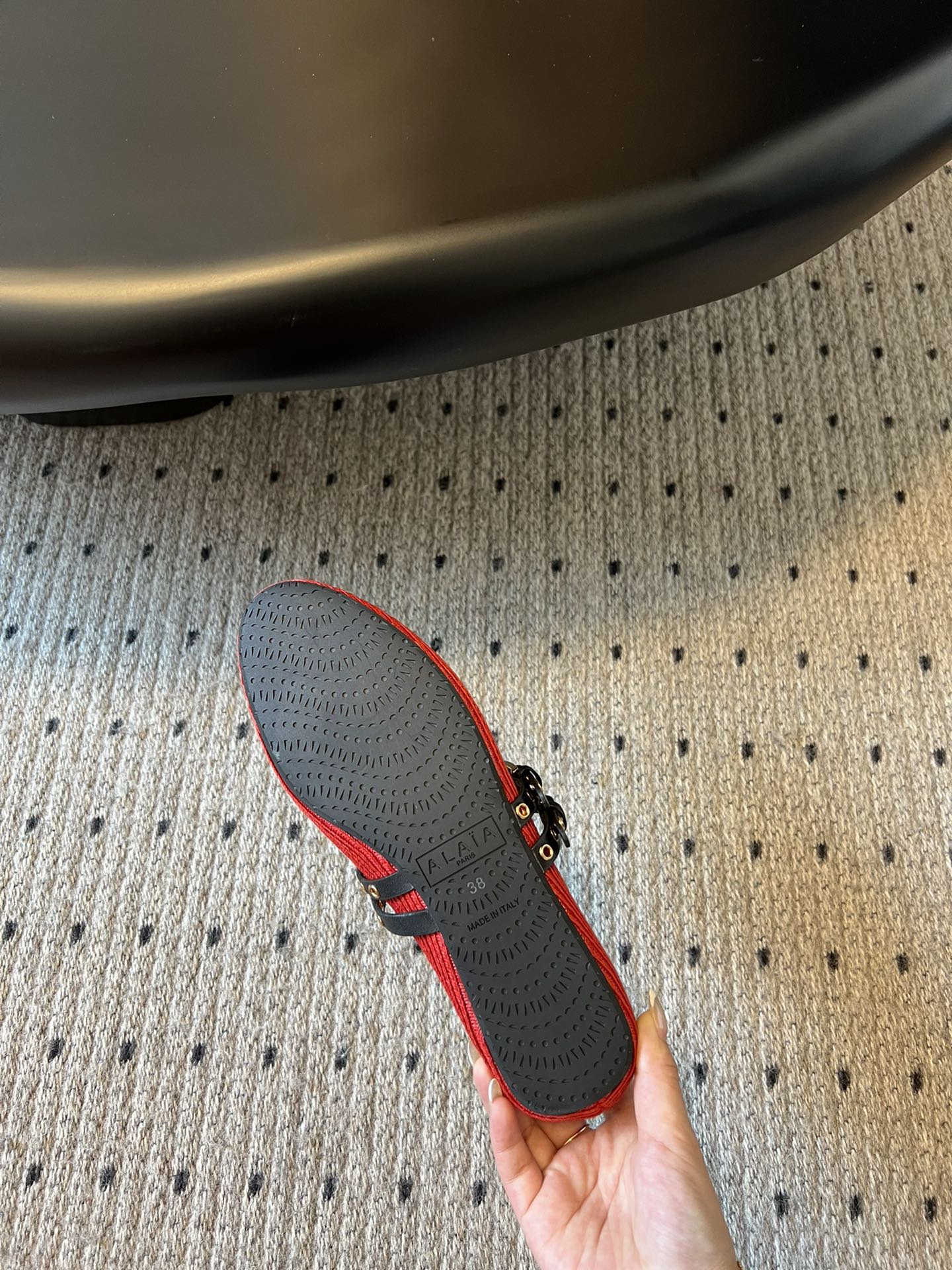 ALAIA MARY JANE SHOES IN CHERRY RED ZP CUSTOM STRAW AND DENIM