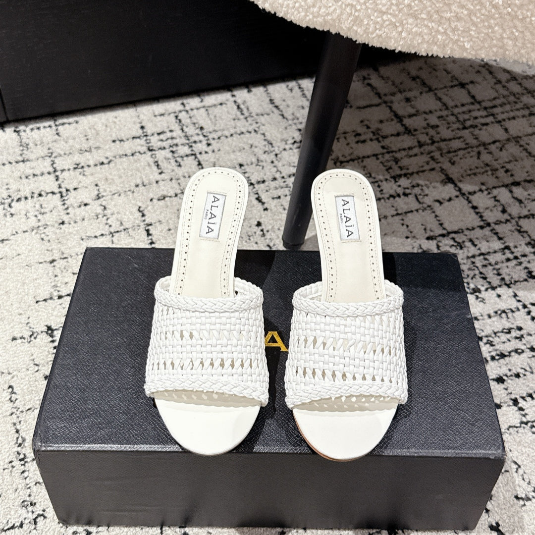 ALAIA Muller high-heeled white woven leather