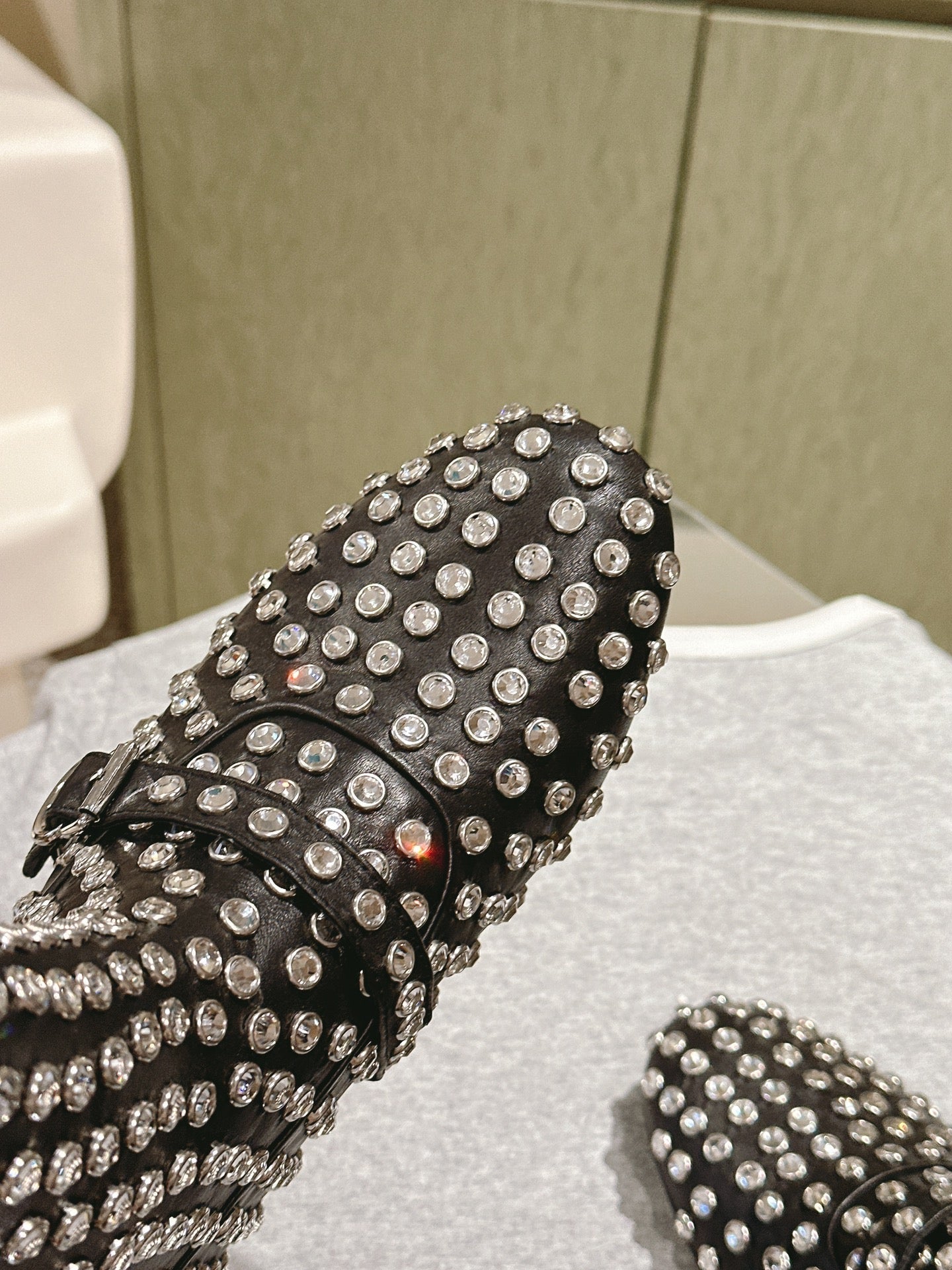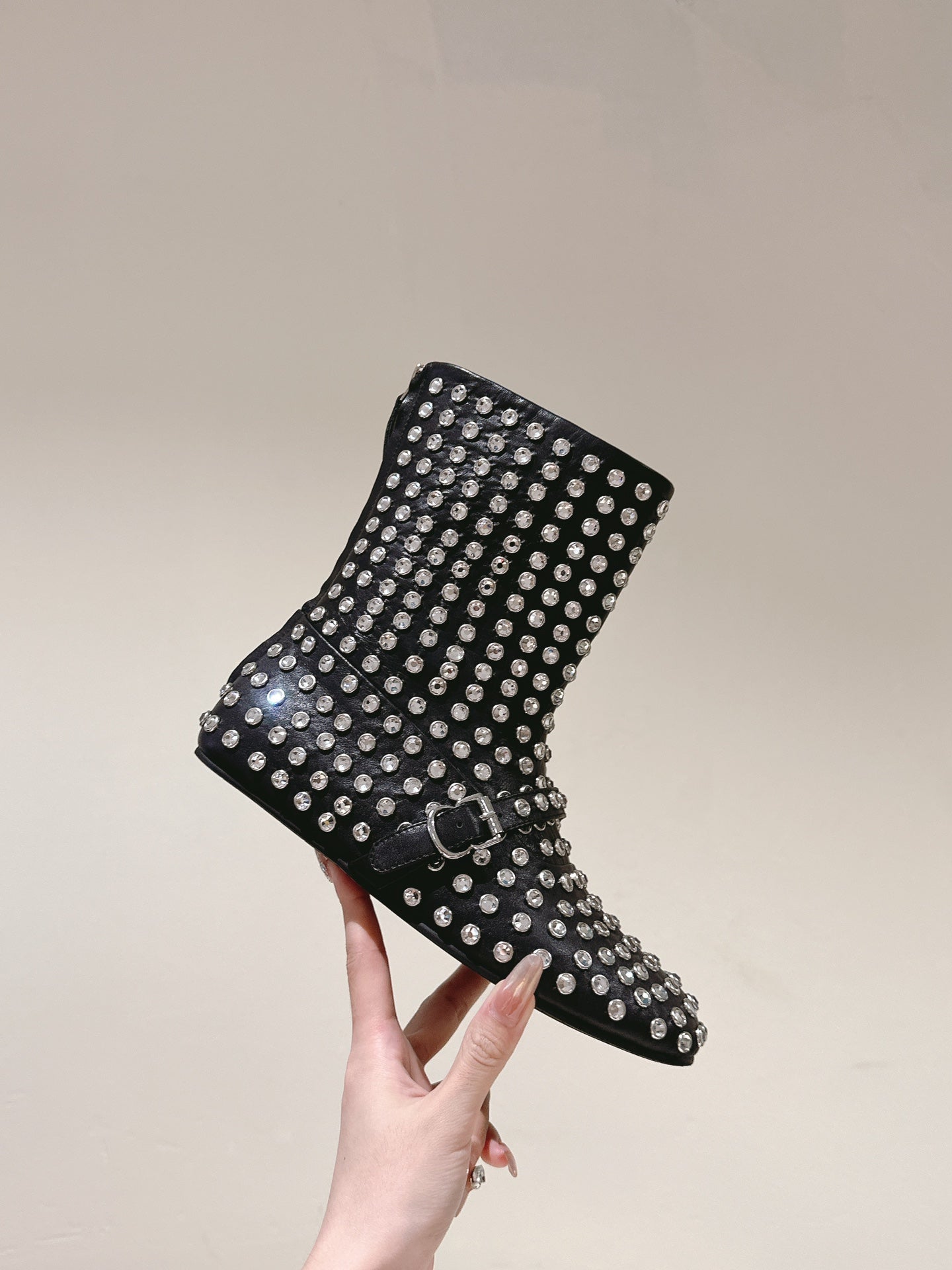 ALAIA SHORT BOOTS IN BLACK LAMBSKIN ATTACH RHINSTONES
