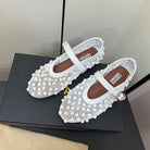 Alaila Ballet Flats With Studs On Fishnet In White 975751