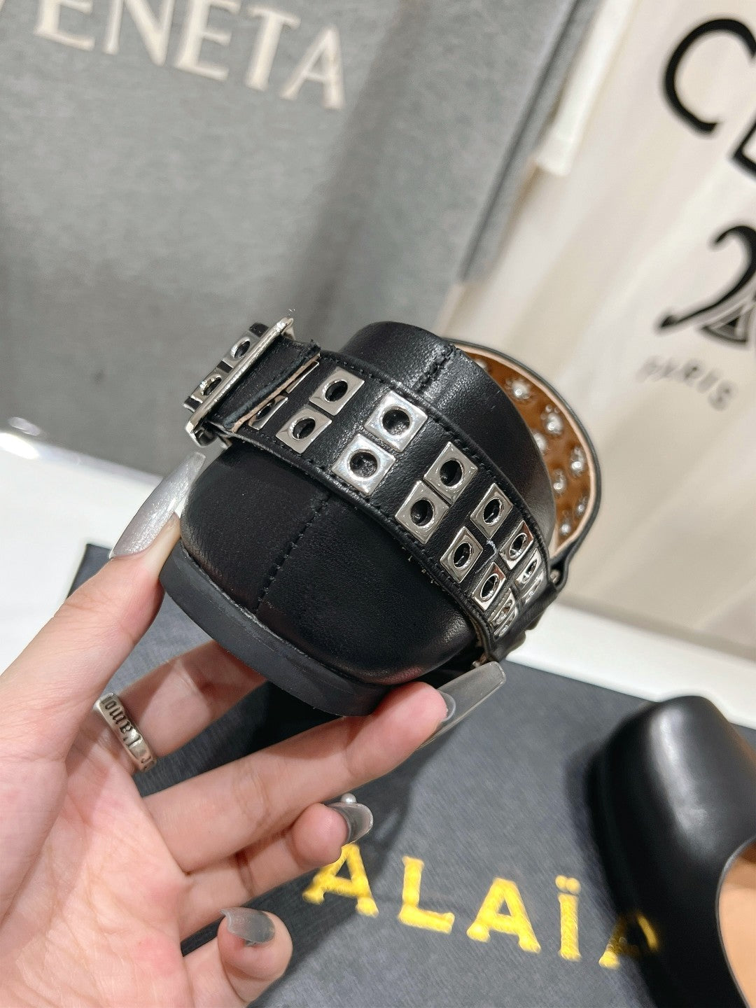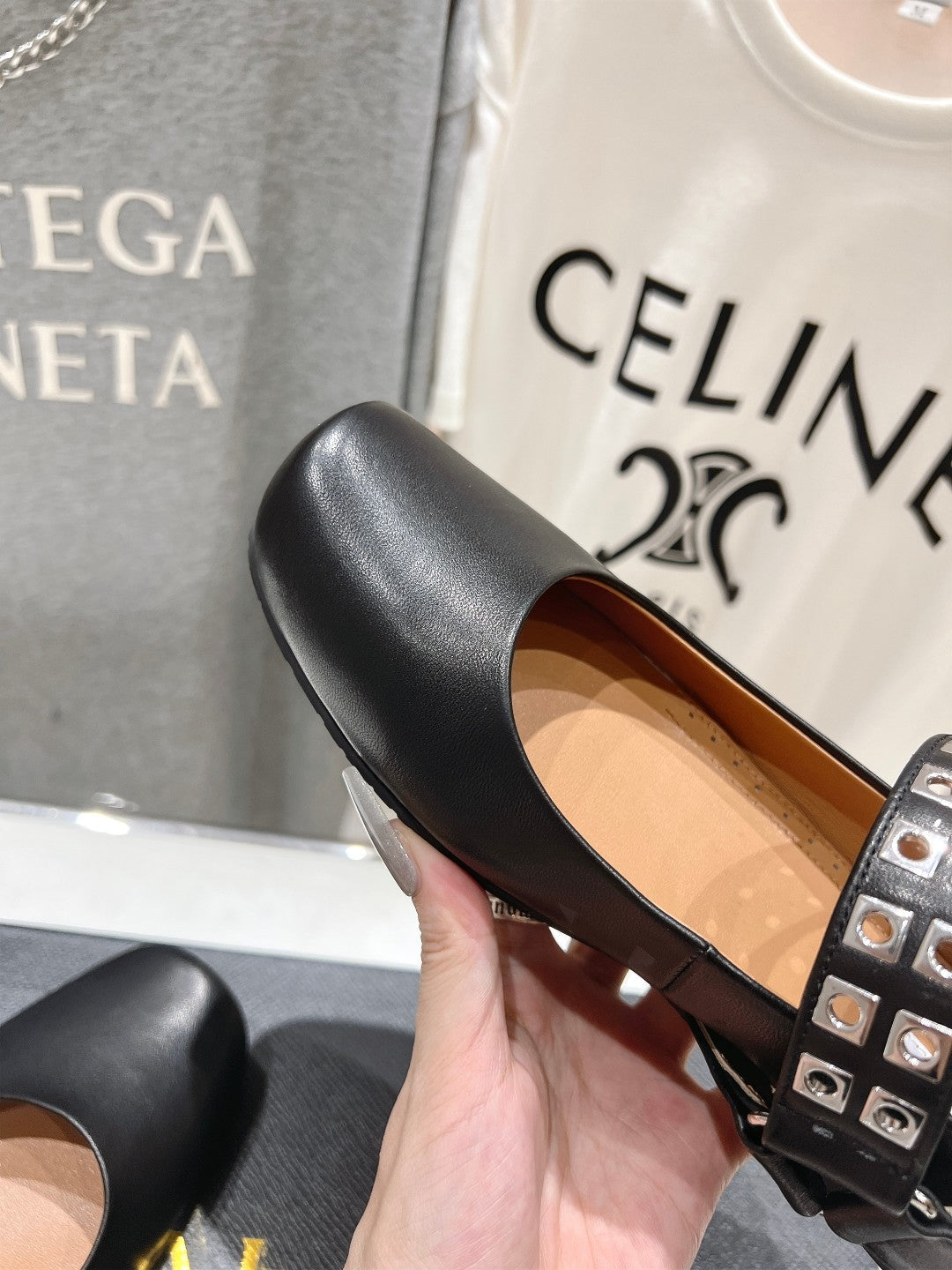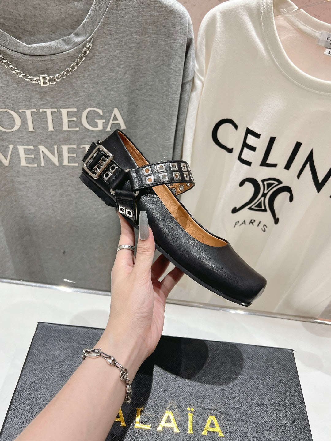 Alaila Biker Ballet Flats In Black Cowhide 911434