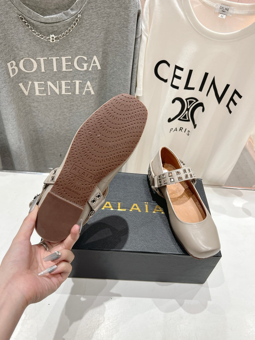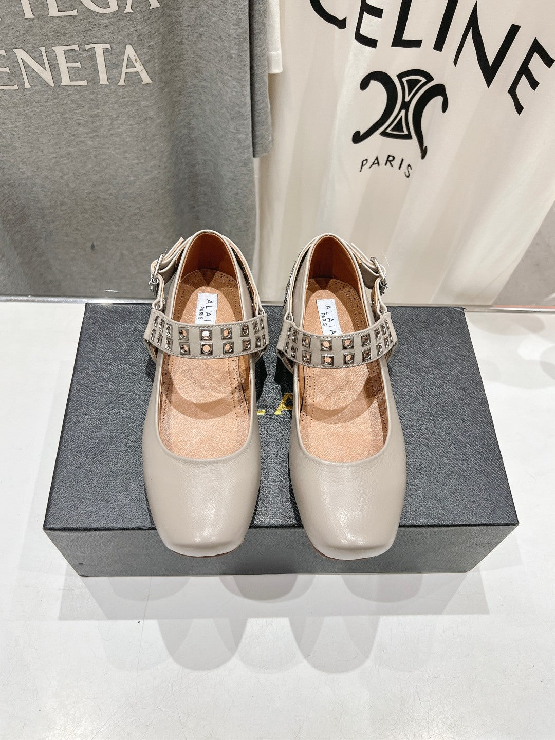 Alaila Biker Ballet Flats In Light Grey Cowhide 911442