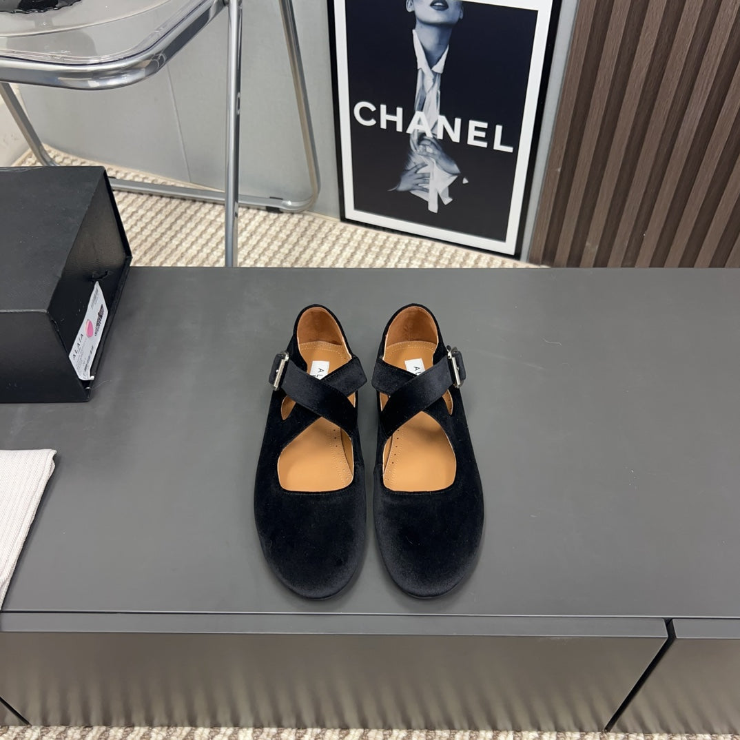 Alaila Criss Cross Ballet Flats In Black Velvet 996039