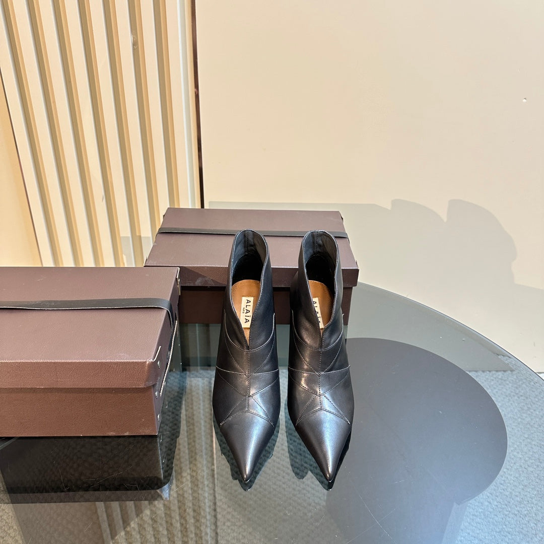 Alaila Heeled Ankle Boots 85mm In Black Cowhide 921036