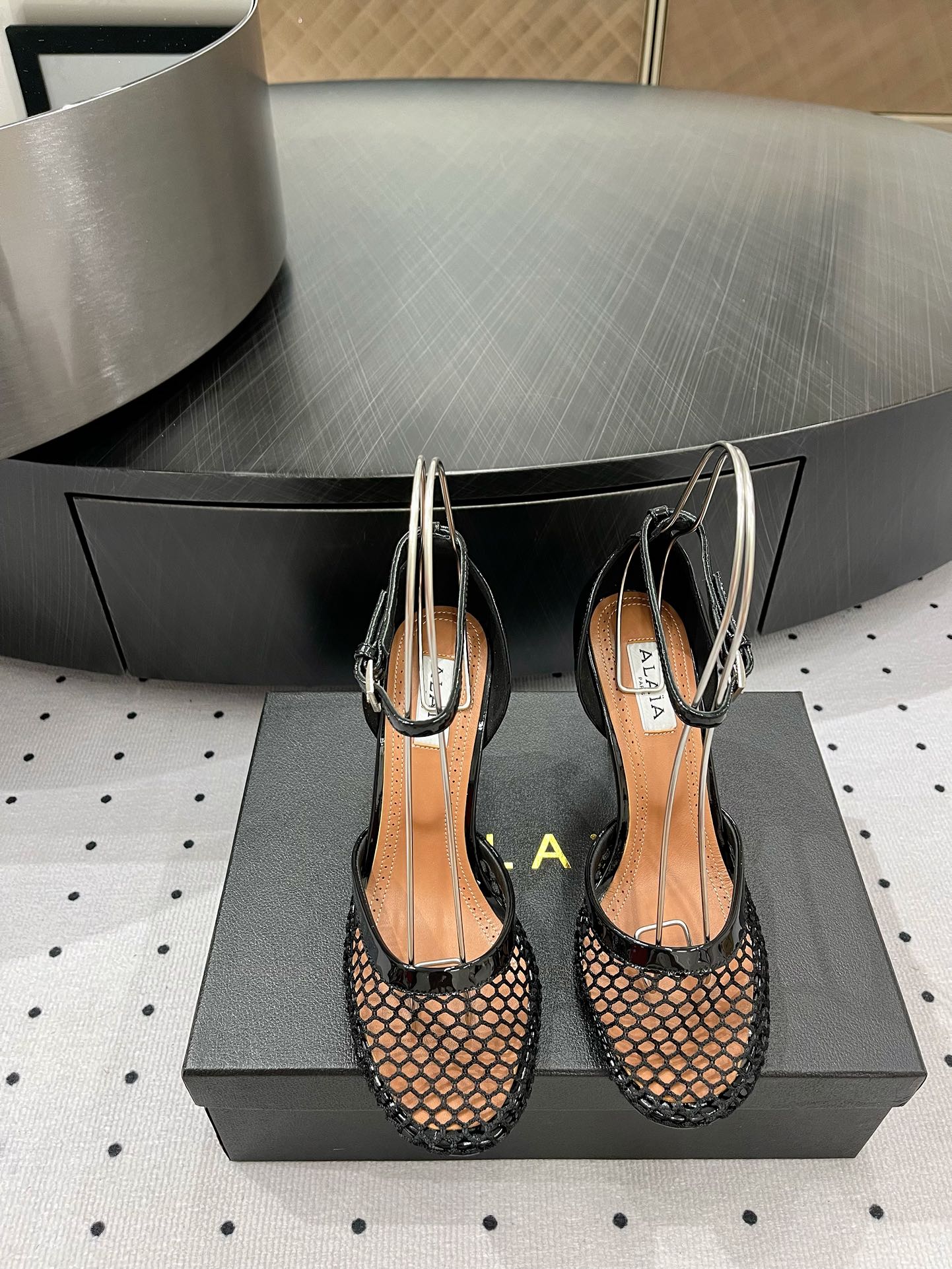 Alaila High Fishnet Pumps 90mm In Black Mesh Fabric 954848