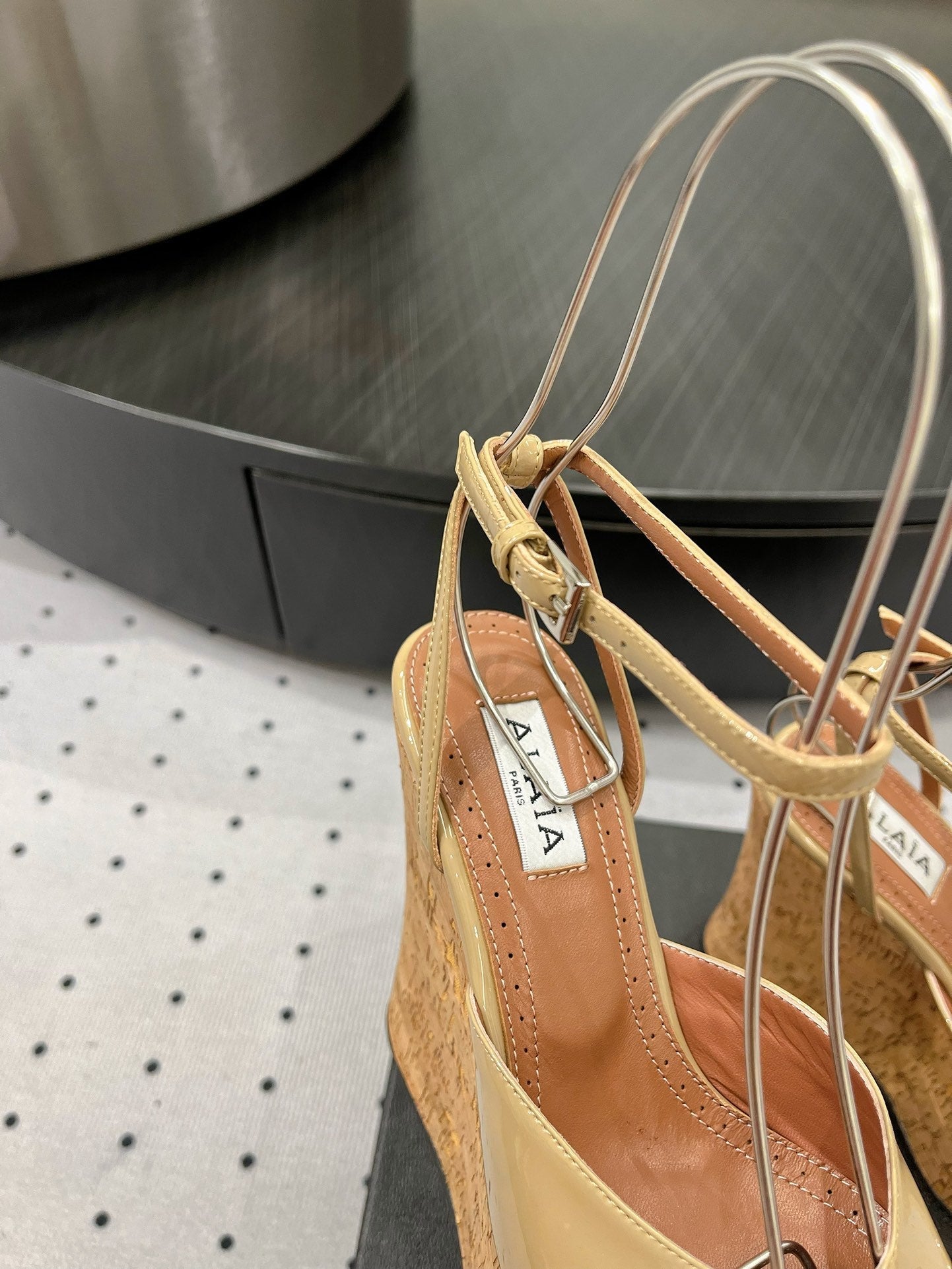 Alaila Wedge Sandals 115mm In Beige Glossy Lambskin 954881