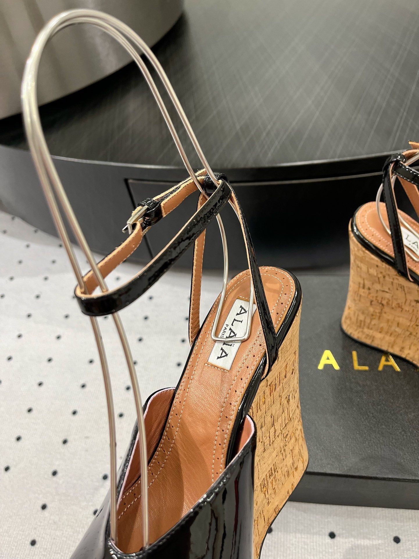 Alaila Wedge Sandals 135mm In Black Glossy Lambskin 954897