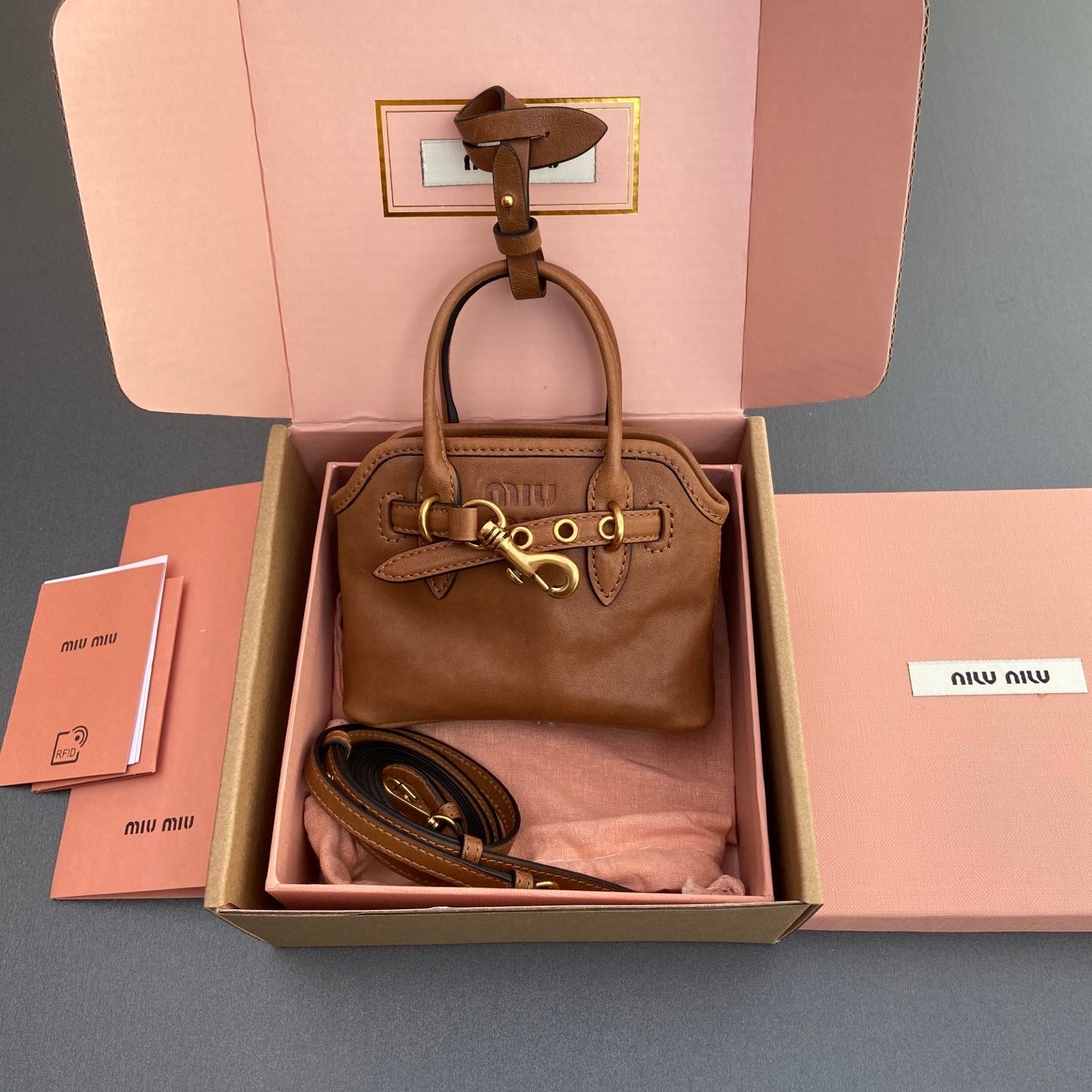 AVENTURE BAG 13 IN SANTA FE BROWN SHINY CALFSKIN