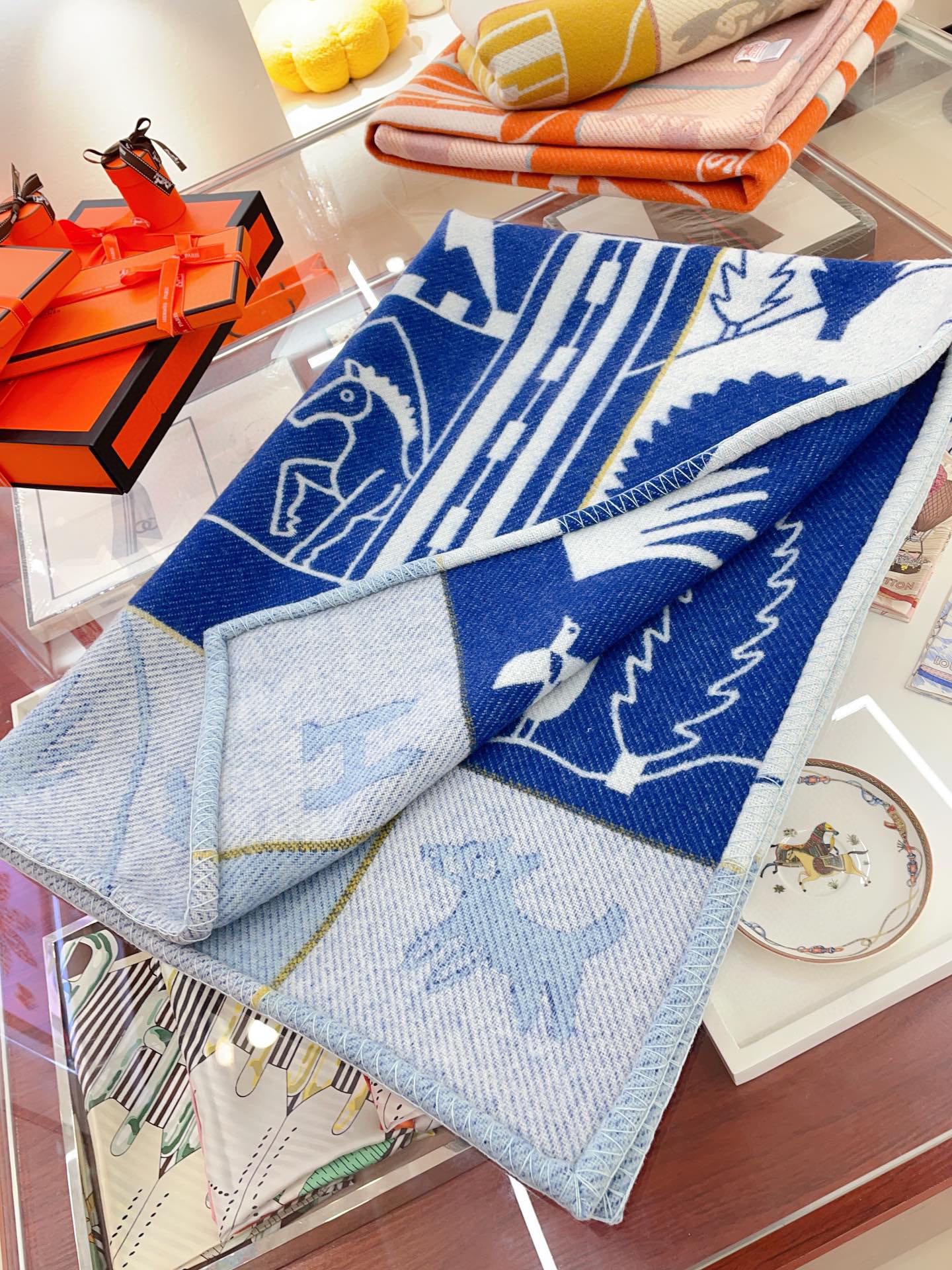 Baby Blankets 140 CM In Dark Blue Mix Light Blue Cashmere And Fine Wool 341415