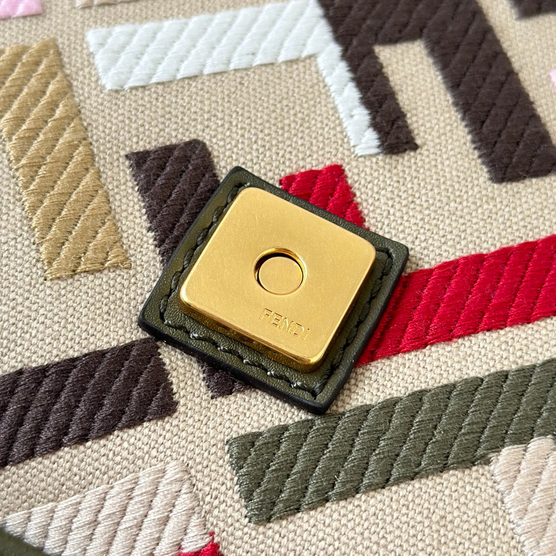 BAGUETTE CANVAS 27 BAG WITH MULTICOLOUR FF EMBROIDERY GOLD HARDWARE