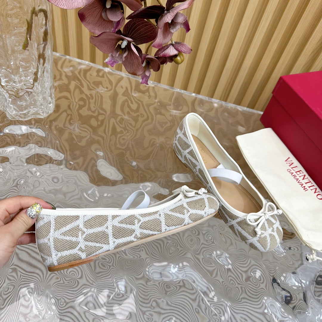 Ballerina In Toile Iconographe 20mm In White Mix Grey Brown Cotton Canvas And Lambskin 102830