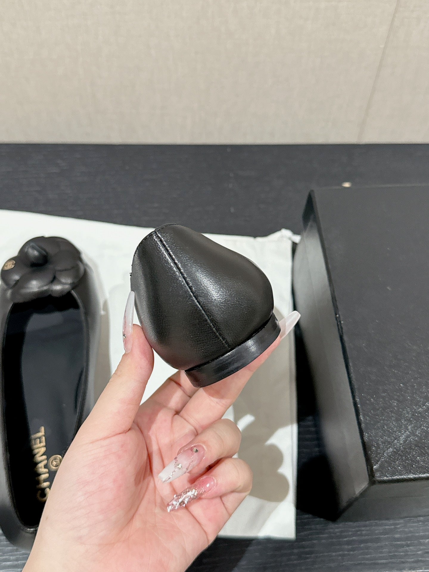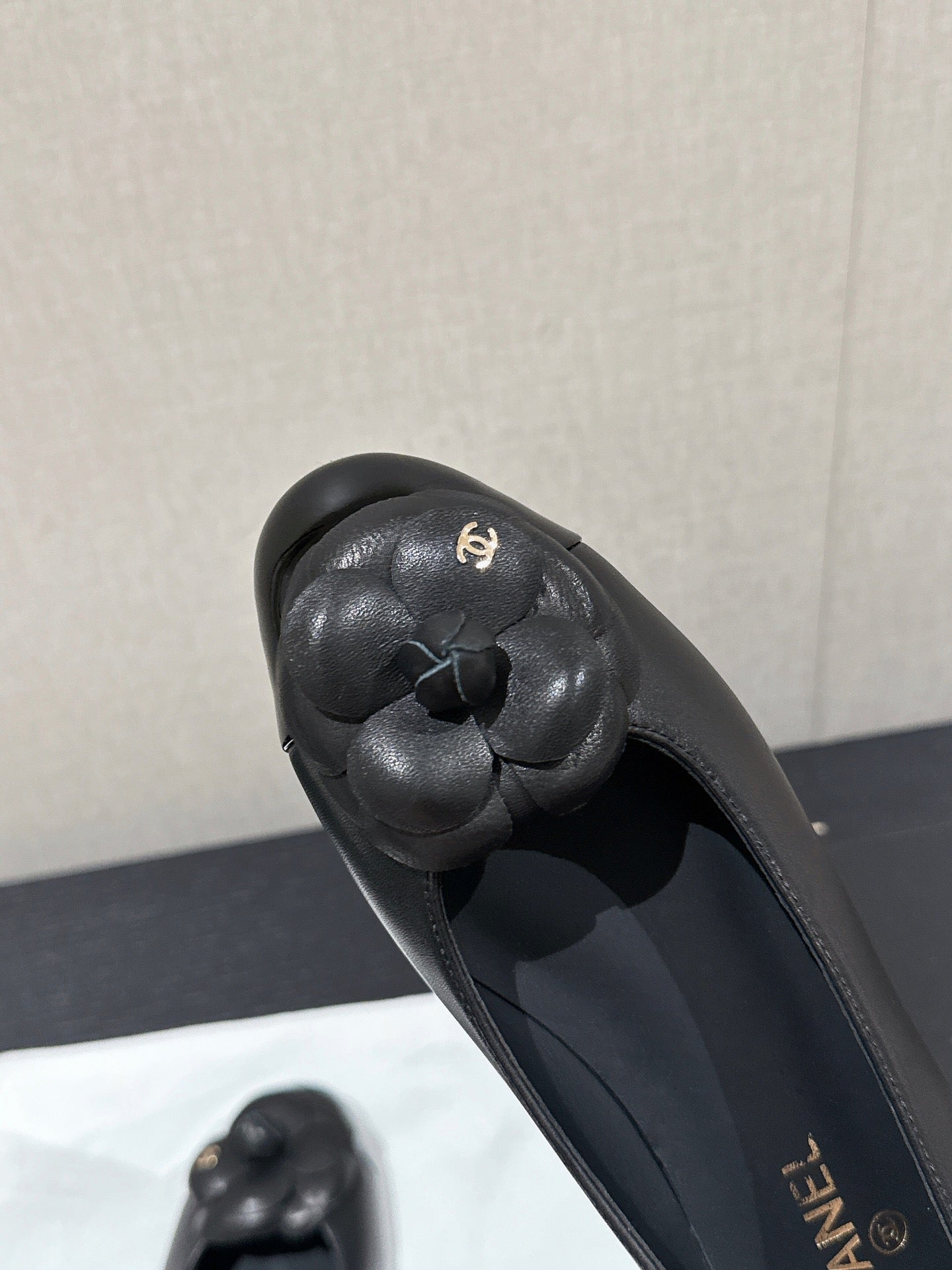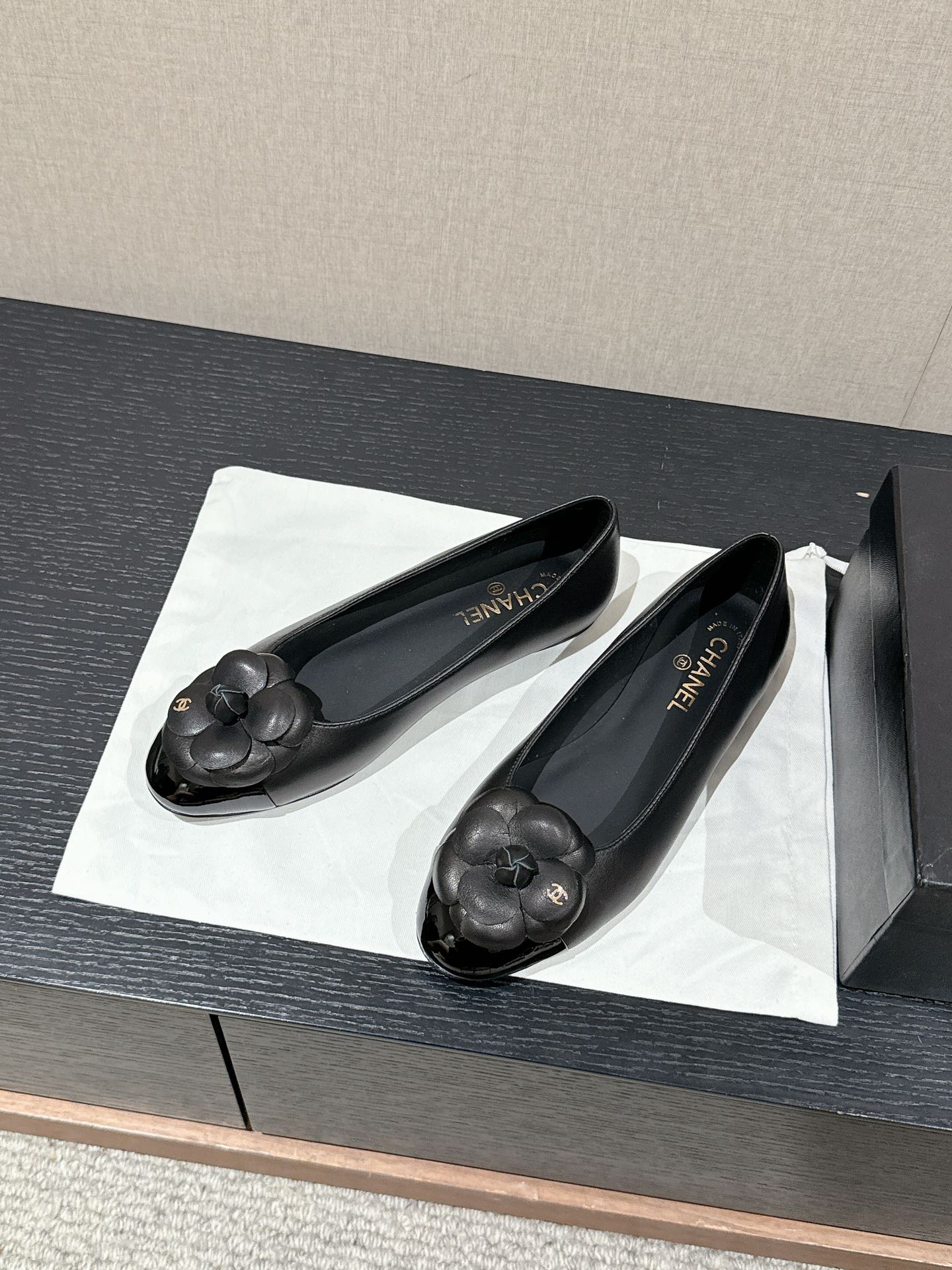 ballet flat flower black calfskin patent calfskin