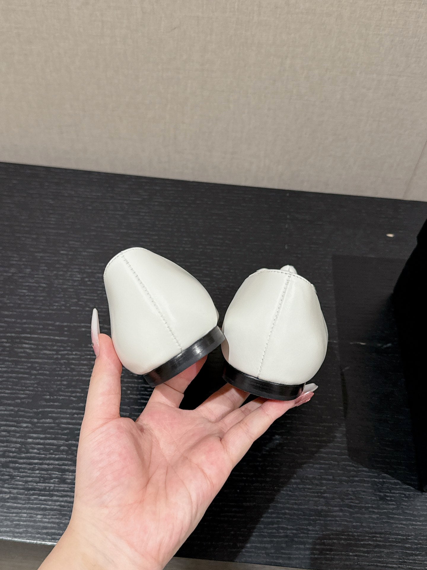 ballet flat flower white calfskin black patent calfskin