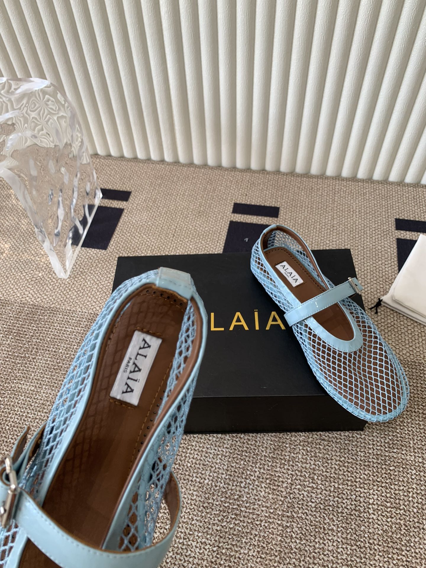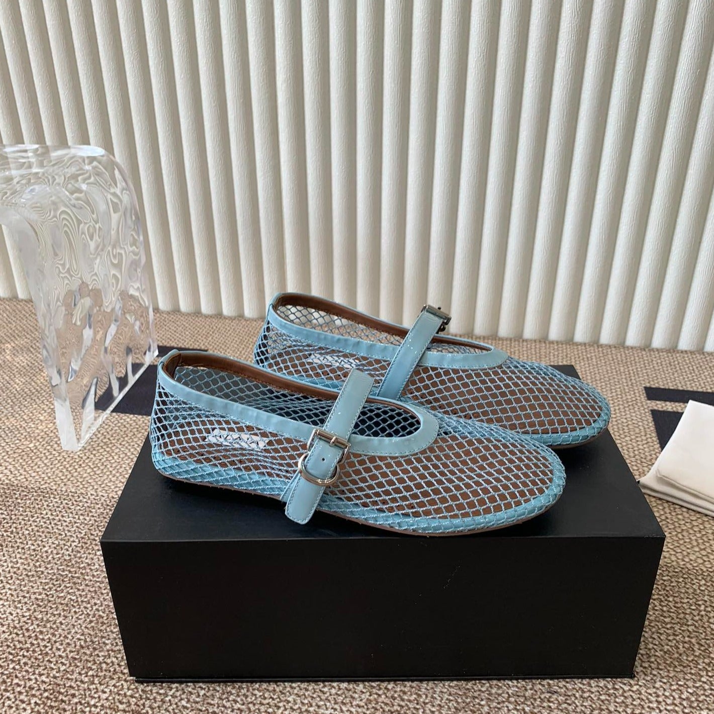 ballet flat in fishnet turquoise blue lambskin