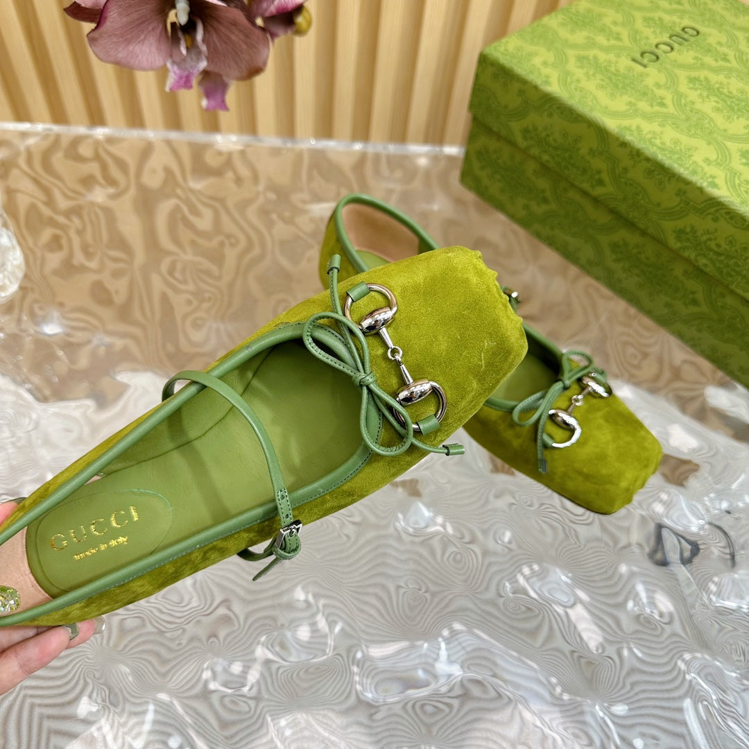 BALLET FLAT IN OLIVE GREEN SUEDE WITH