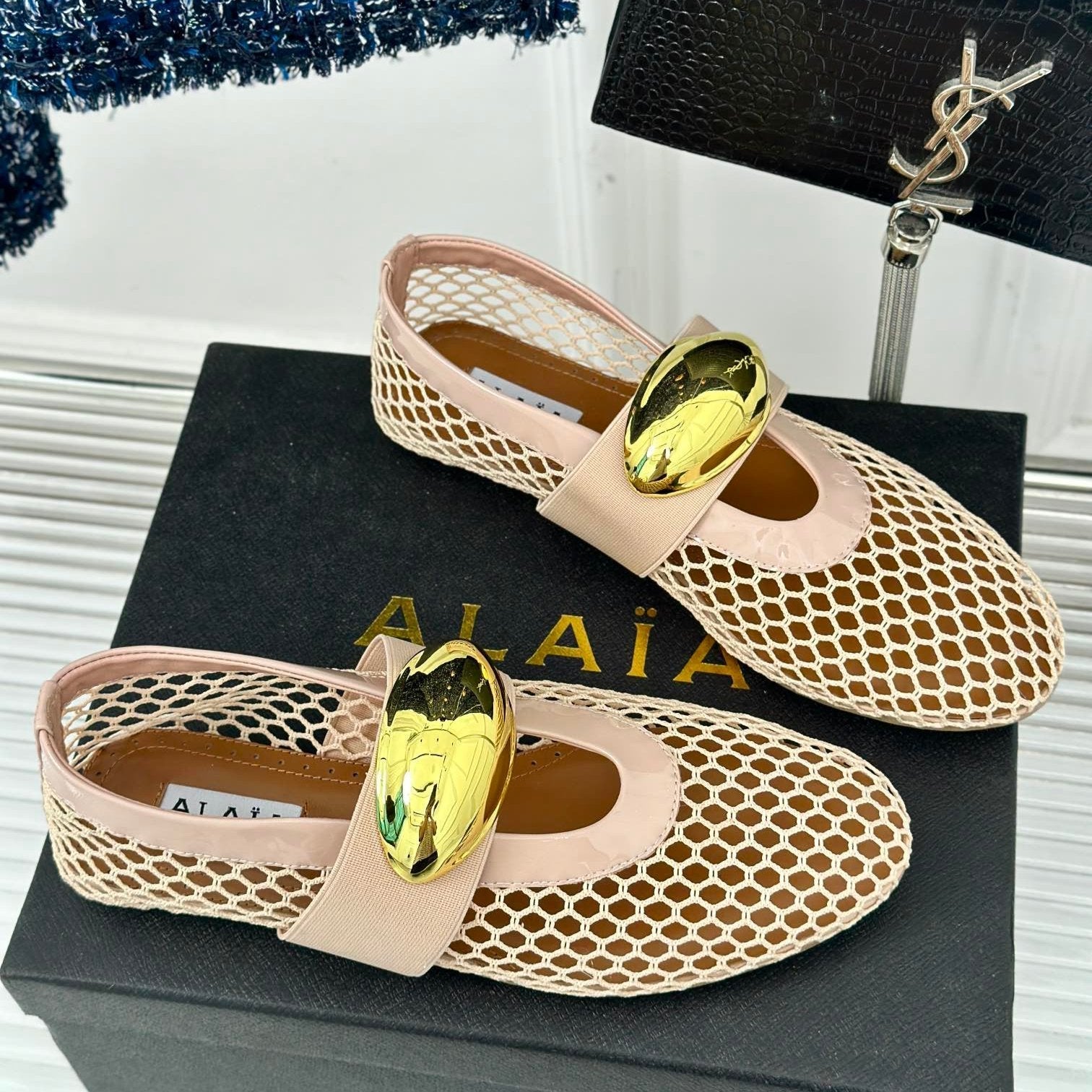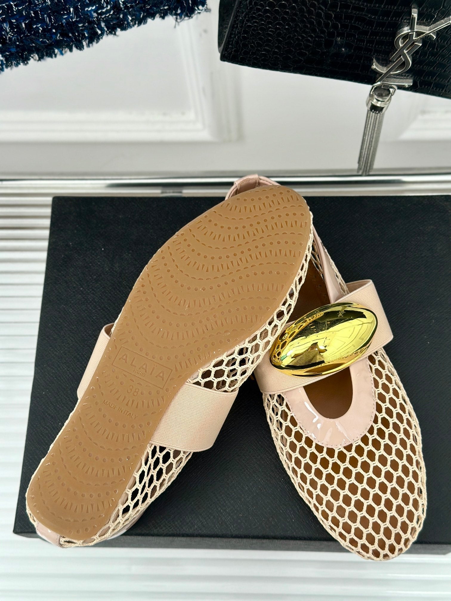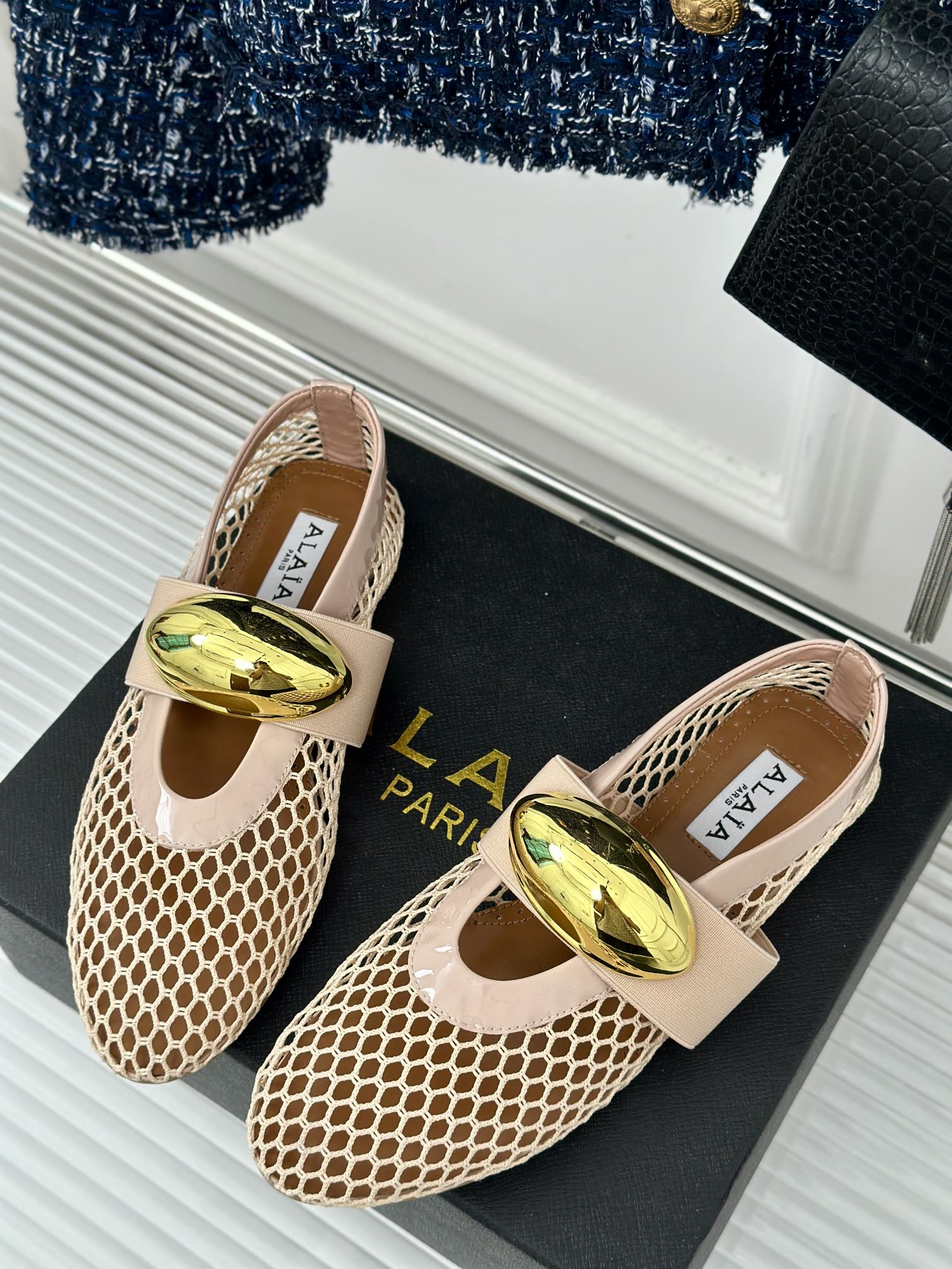 ballet flat jewel fishnet beige lambskin