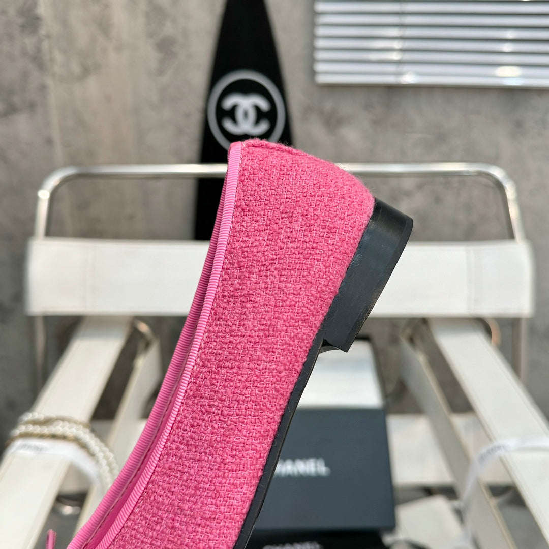 ballet flat pink tweed black patent calfskin