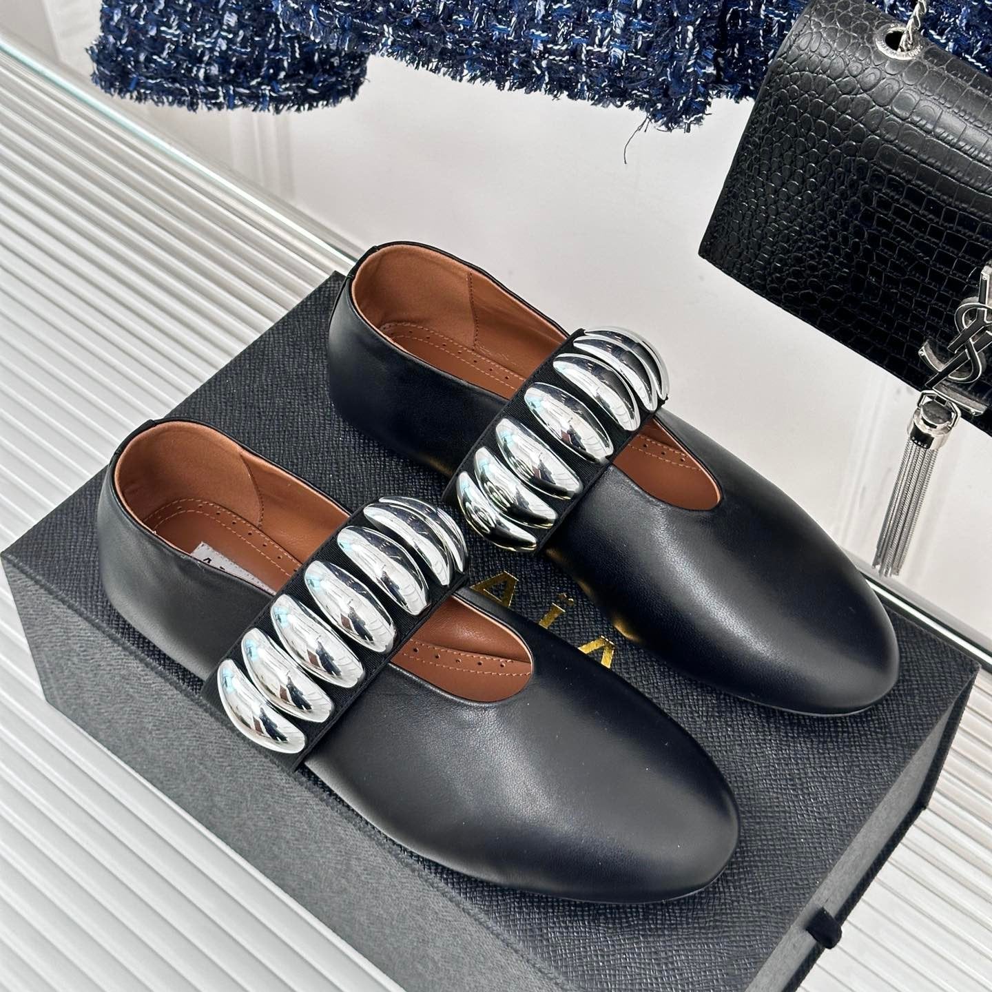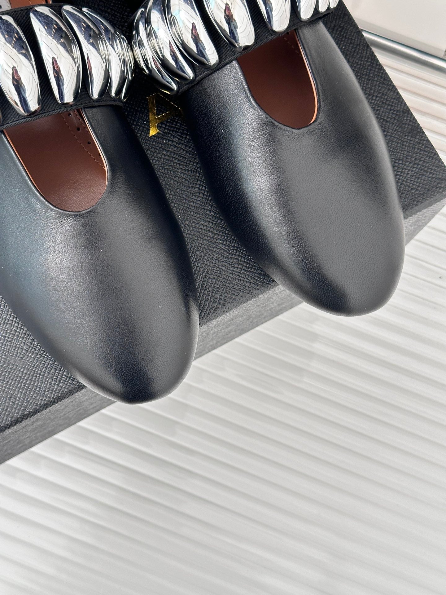 ballet flat silver jewel black lambskin