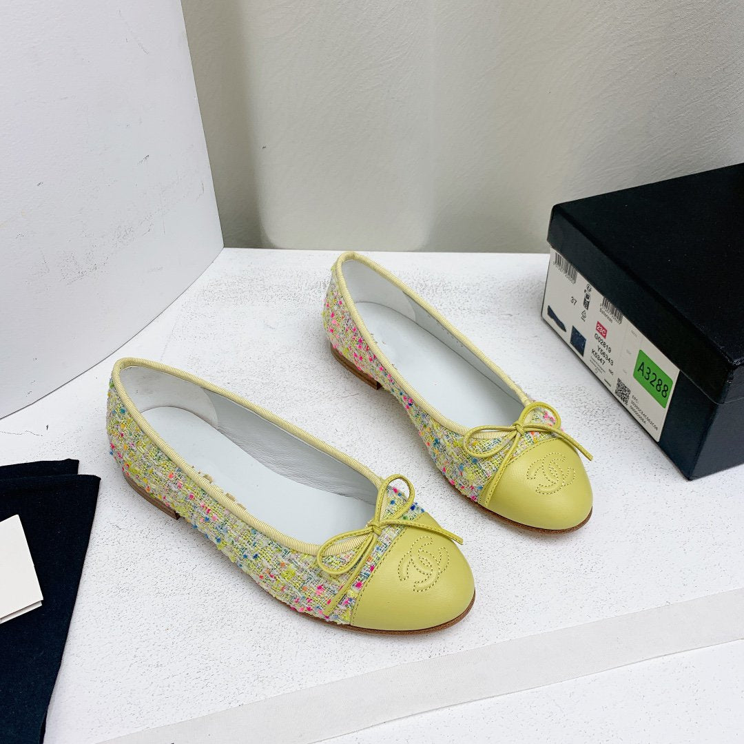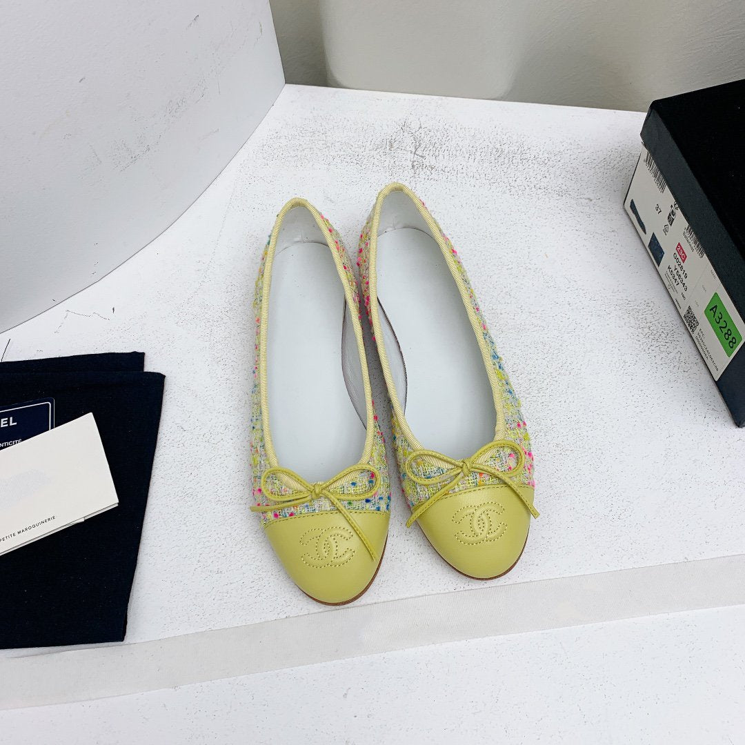ballet flat yellow red blue tweed grosgrain