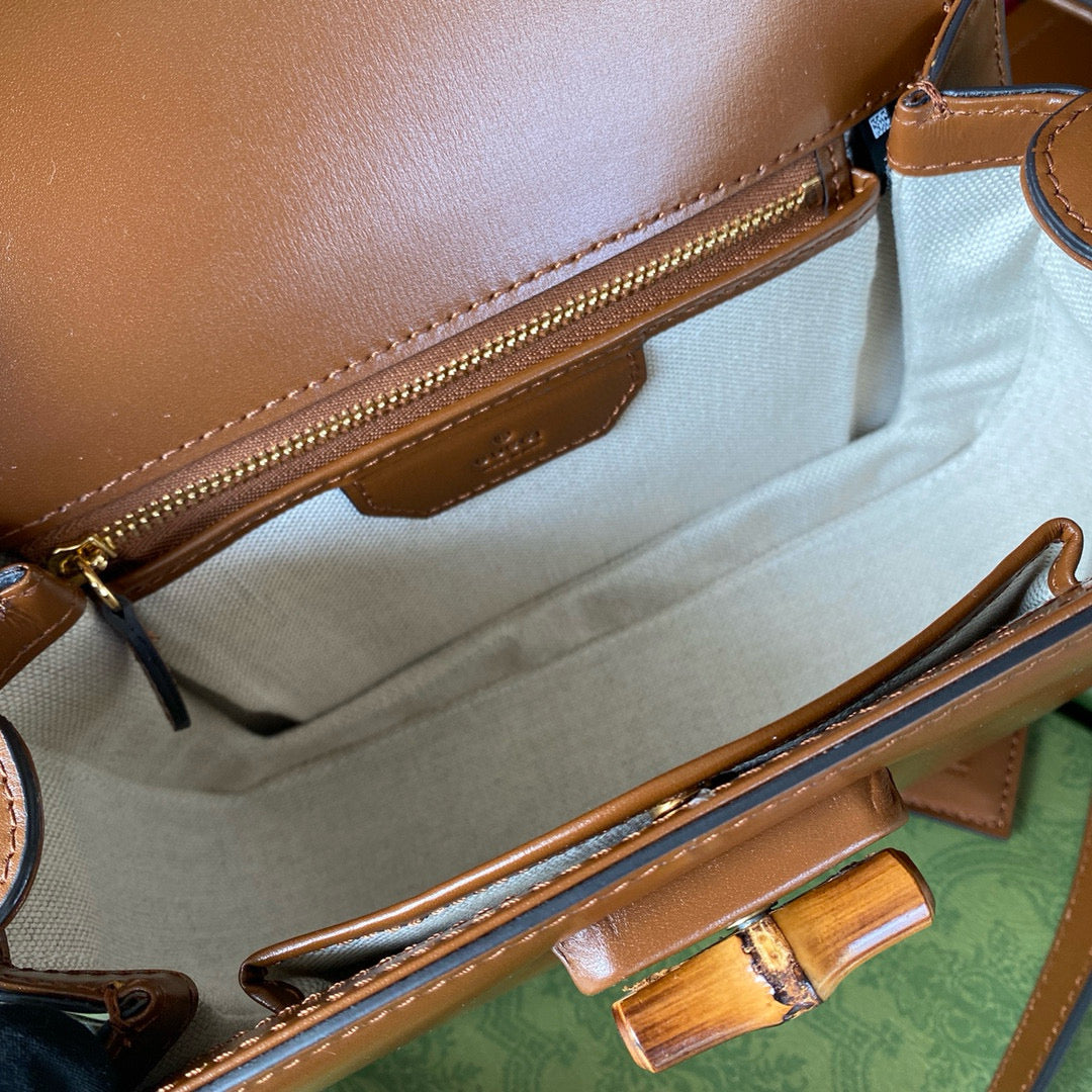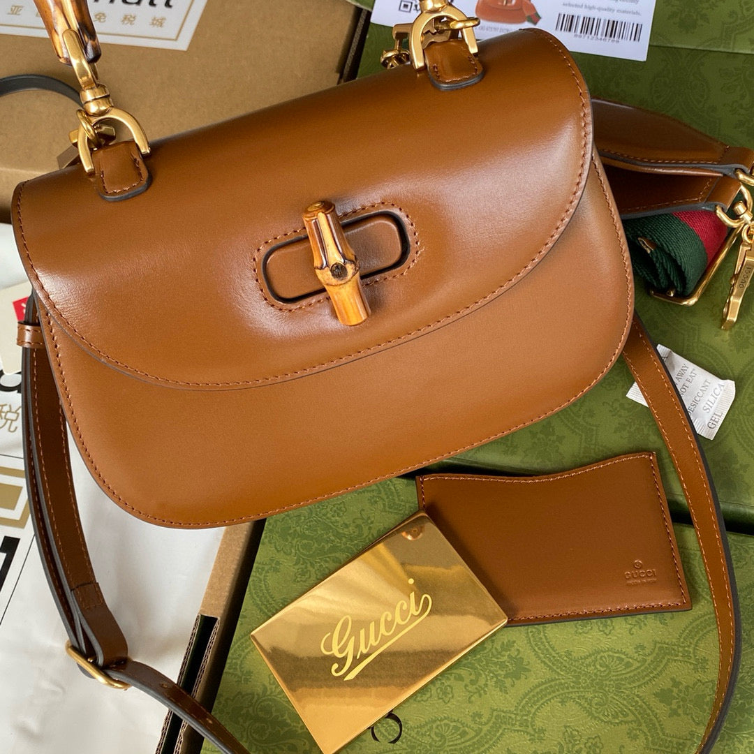 BAMBOO TOP HANDLE BAG 21 IN BROWN CALFSKIN
