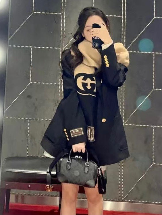 CAMEL BEIGE AND BLACK WOOL WITH INTERLOCKING G SCARF 200 CM