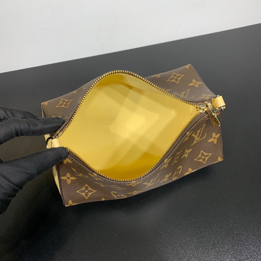 BLOOM POUCH 22 IN BROWN MONOGRAM CANVAS AND PASTEL YELLOW CALFSKIN SIDES