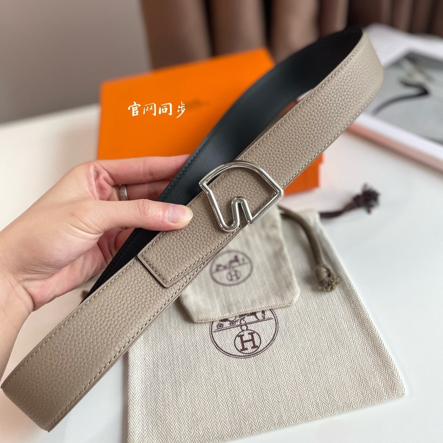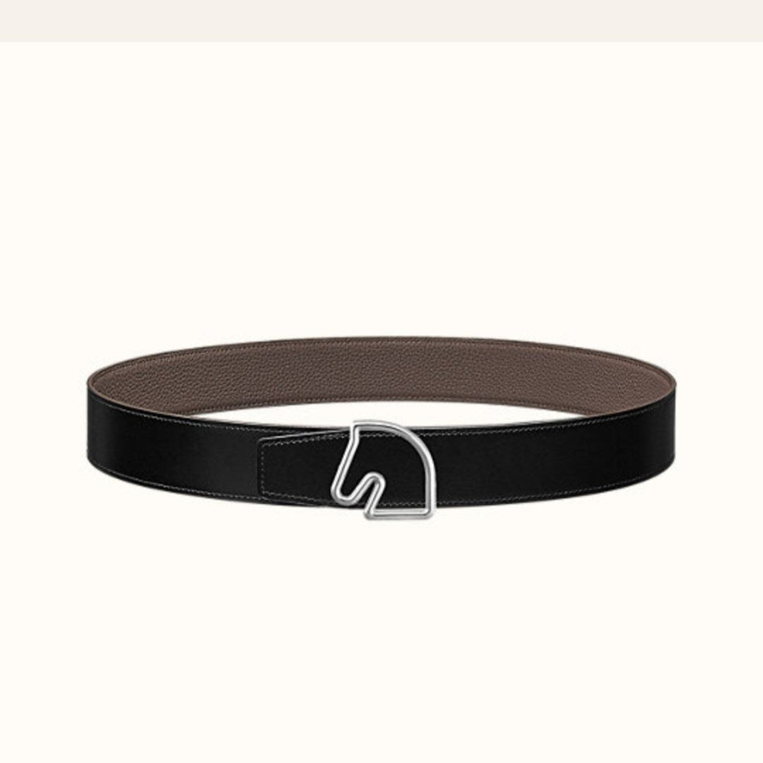 BOUCLE BELT BUCKLE & REVERSIBLE KHAKI BROWN LEATHER STRAP 38MM SILVER HARDWARE