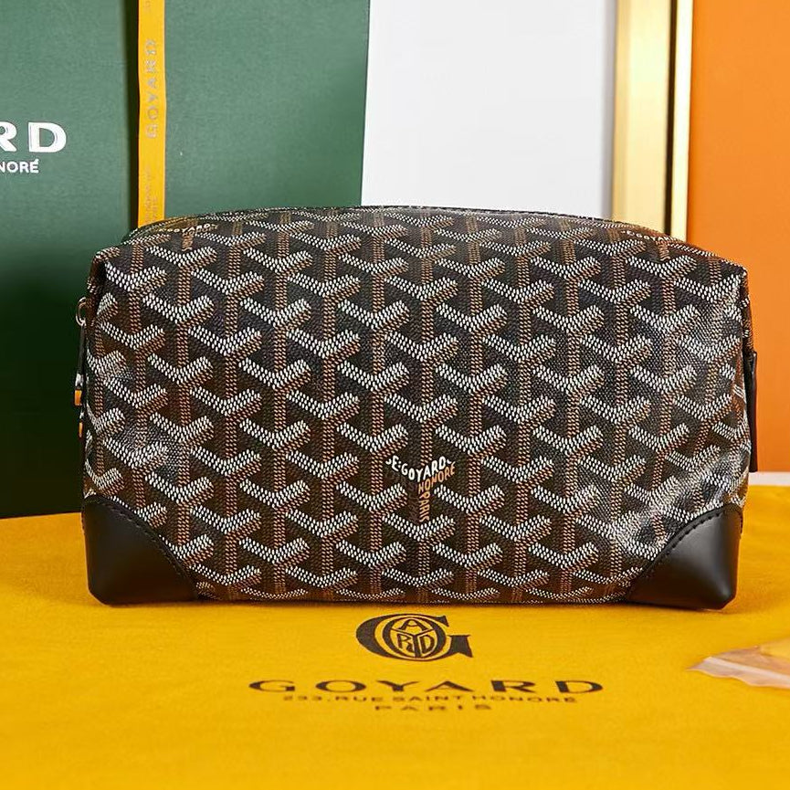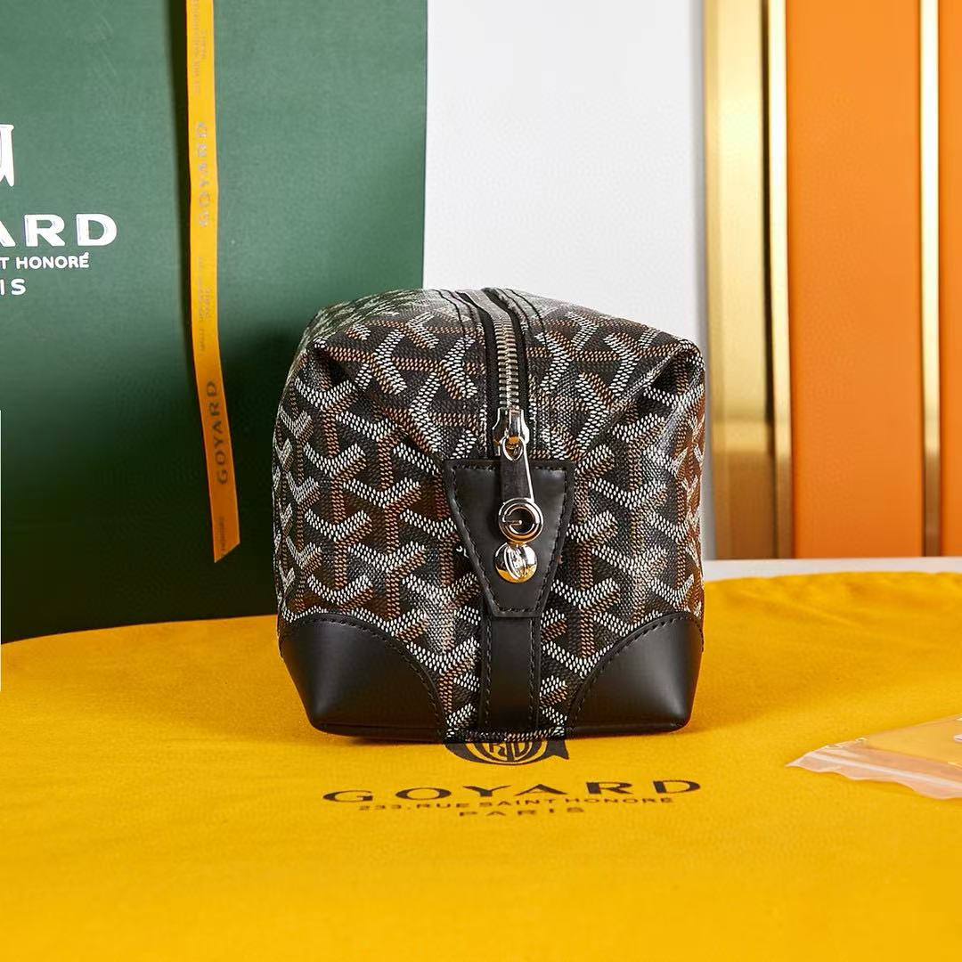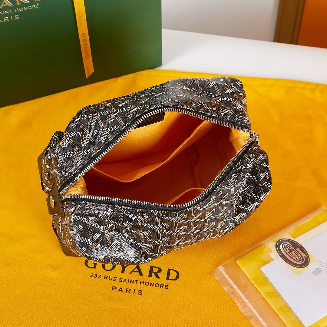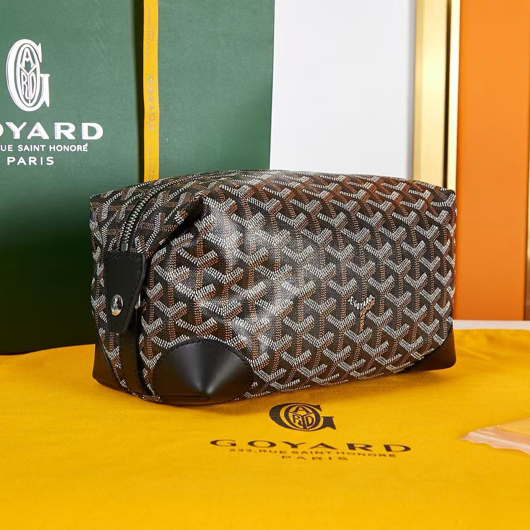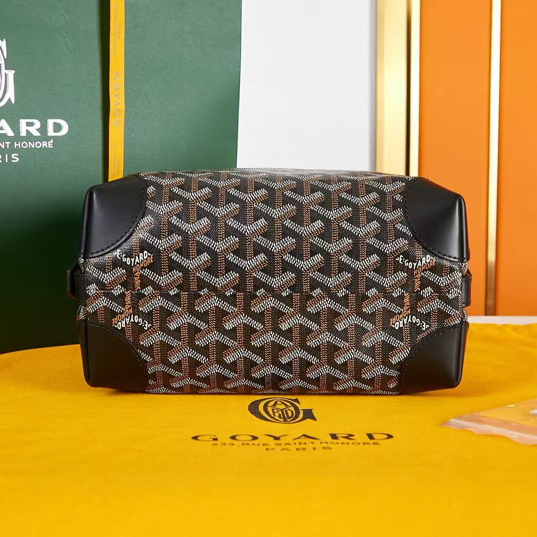 BOWLING TOILETRY BAG 24 IN BLACK GOYARDINE CANVAS AND CALFSKIN