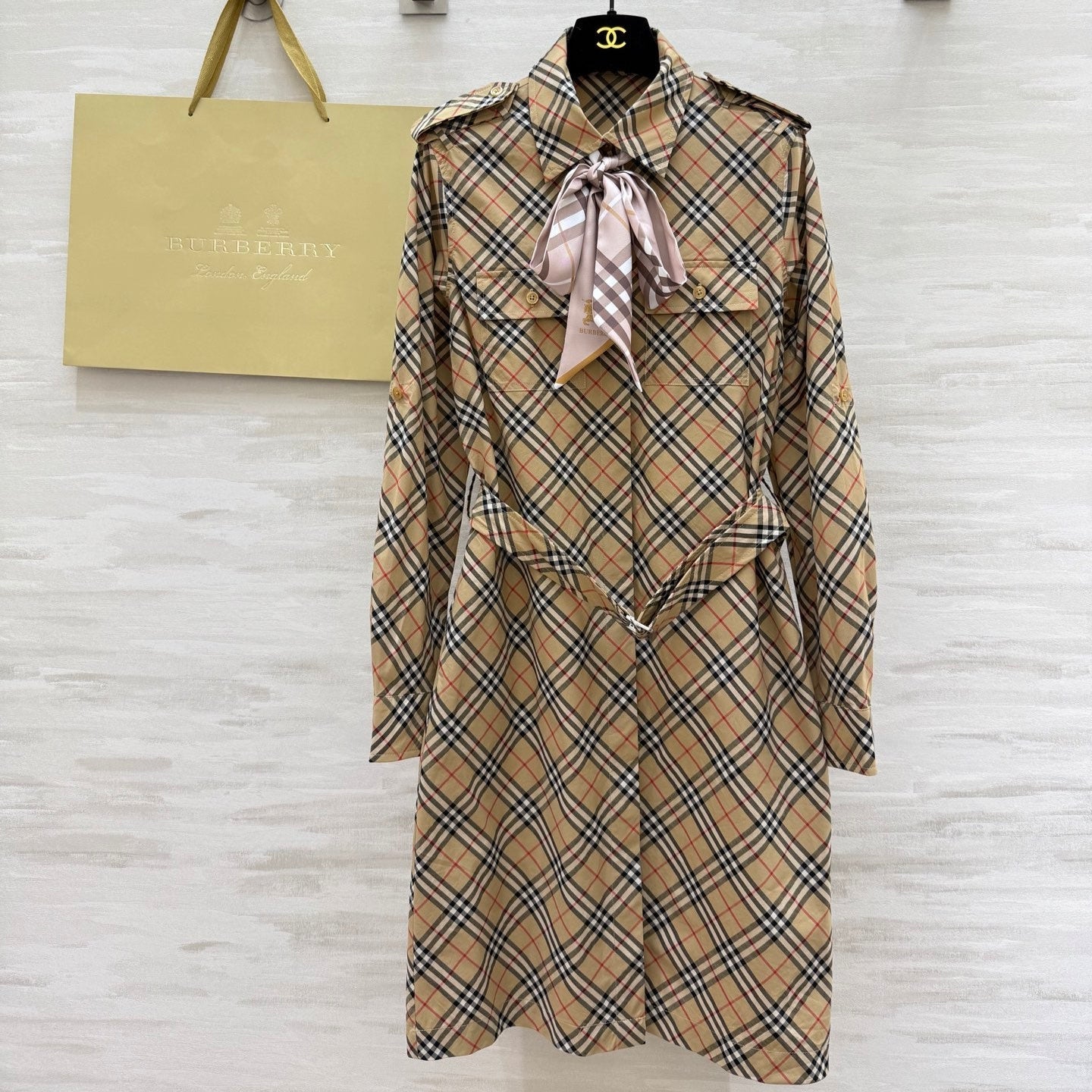 • Color: Beige plaid